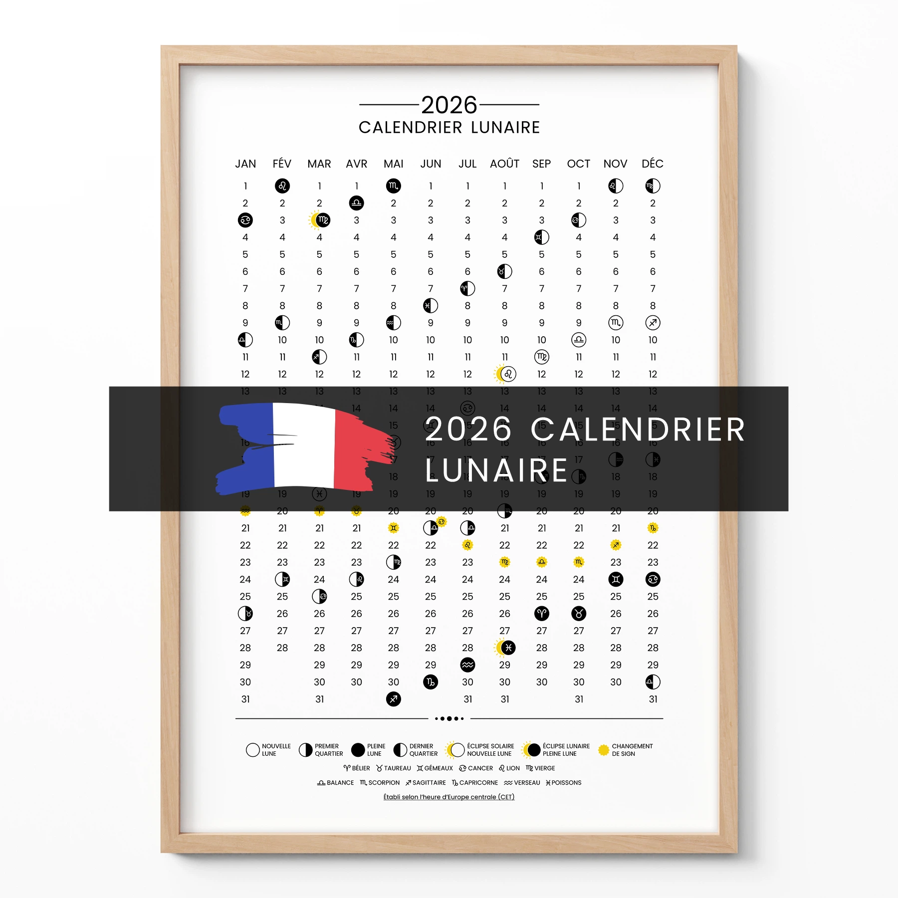 This elegant 2026 moon calendar is more than just a decorative piece – it’s a helpful guide to the moon’s journey through the year. Designed in French, this lunar calendar shows every moon phase, zodiac sign transition, and eclipse in a clear and modern layout. Ideal for astrology fans or anyone who wants to stay in tune with the night sky. Printed on high-quality paper, it’s perfect for home, office, or studio. Whether you’re tracking full moons or just love celestial art, this 2026 moon calendar brings both beauty and information to your wall. Makes a thoughtful gift for anyone inspired by the stars.