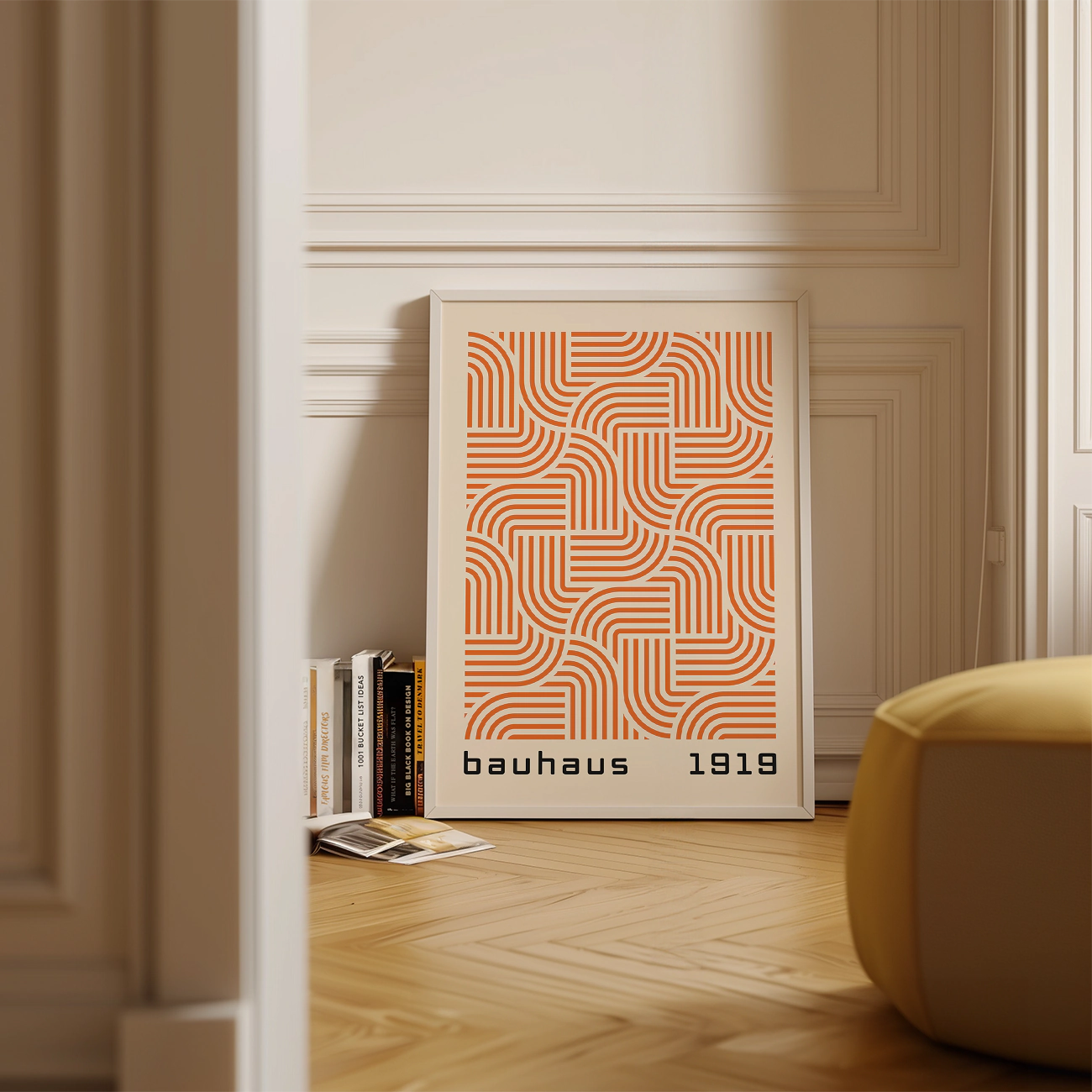 Abstract Minimalist Wall Art – Orange Bauhaus Poster