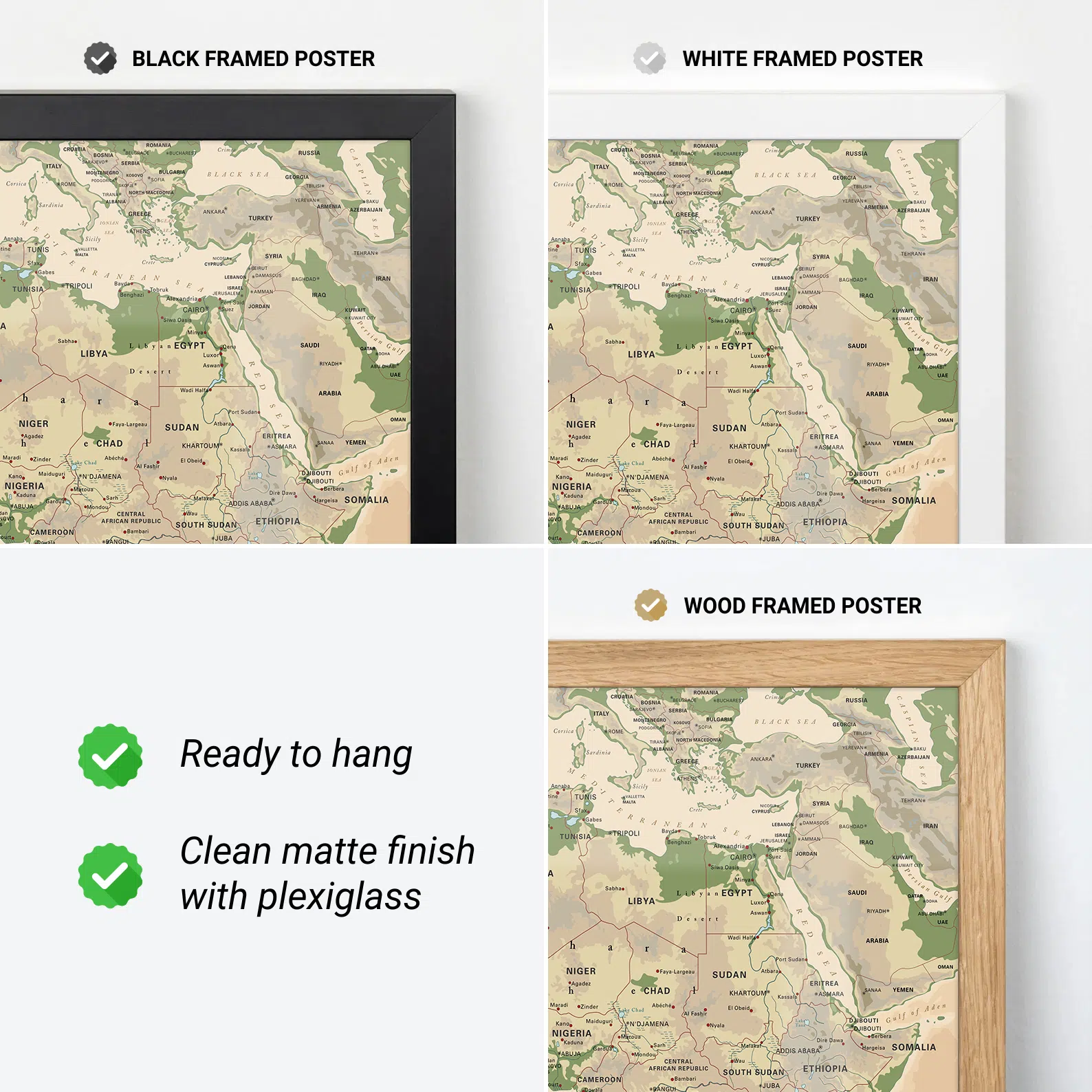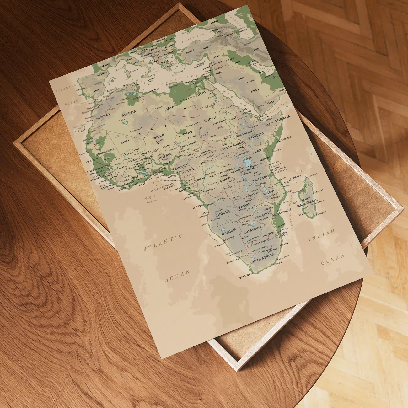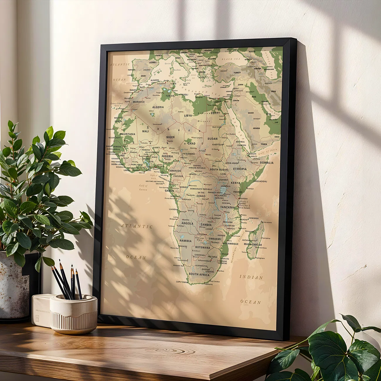 This Africa map poster is a stylish and informative print that adds charm to any room. With a soft retro color scheme and detailed geographic design, it’s perfect for your living room, office, or study space. Whether you’re a travel lover or simply want to add personality to your walls, this poster delivers both beauty and insight. It’s printed on high-quality matte paper, ensuring sharp details and rich colors. The Africa map poster fits beautifully into vintage, eclectic, or modern interiors and makes a great gift for geography fans and wanderlusters alike.
