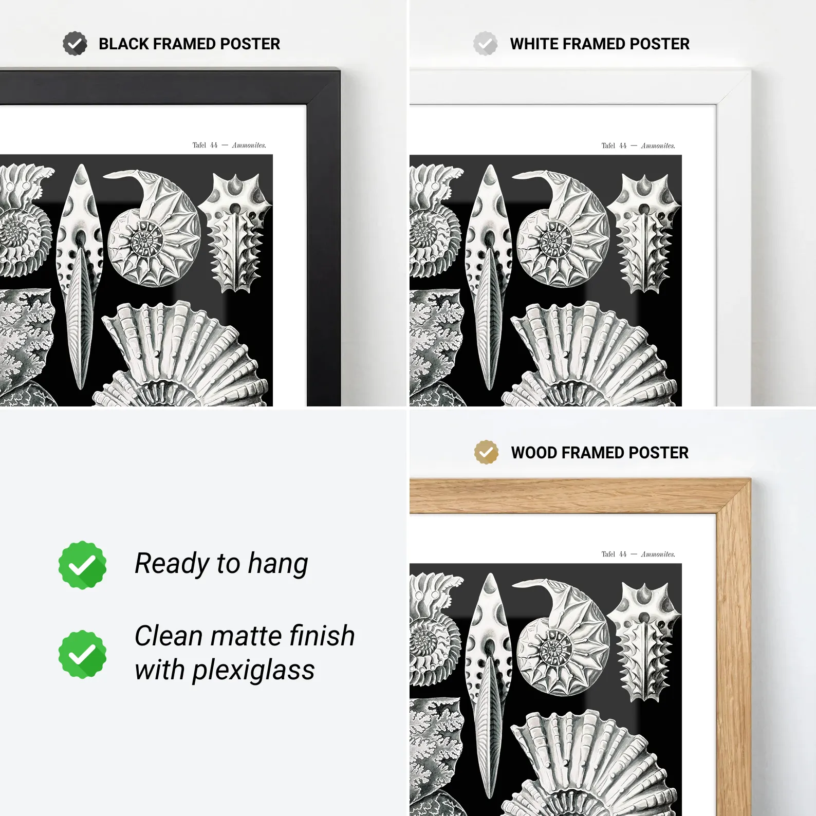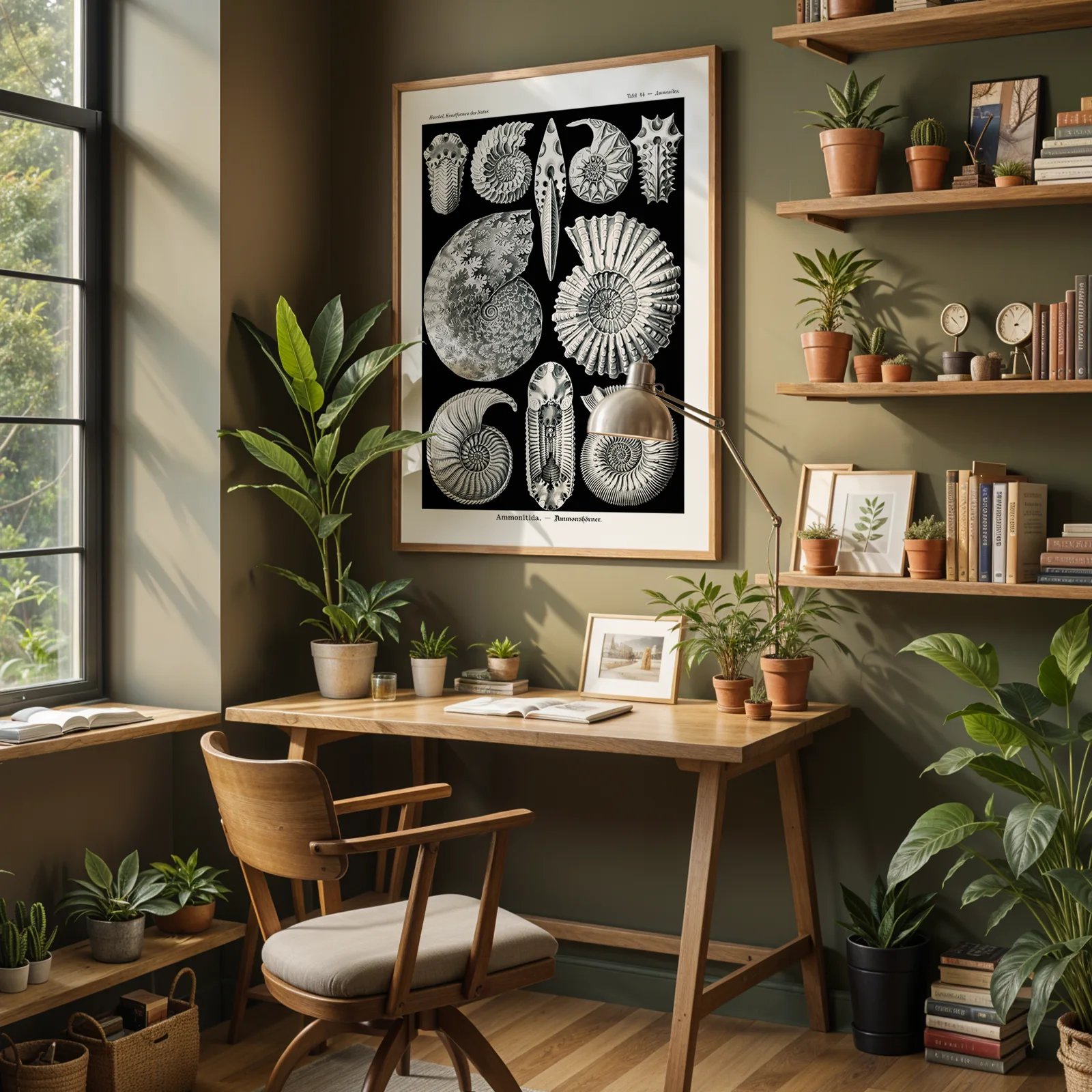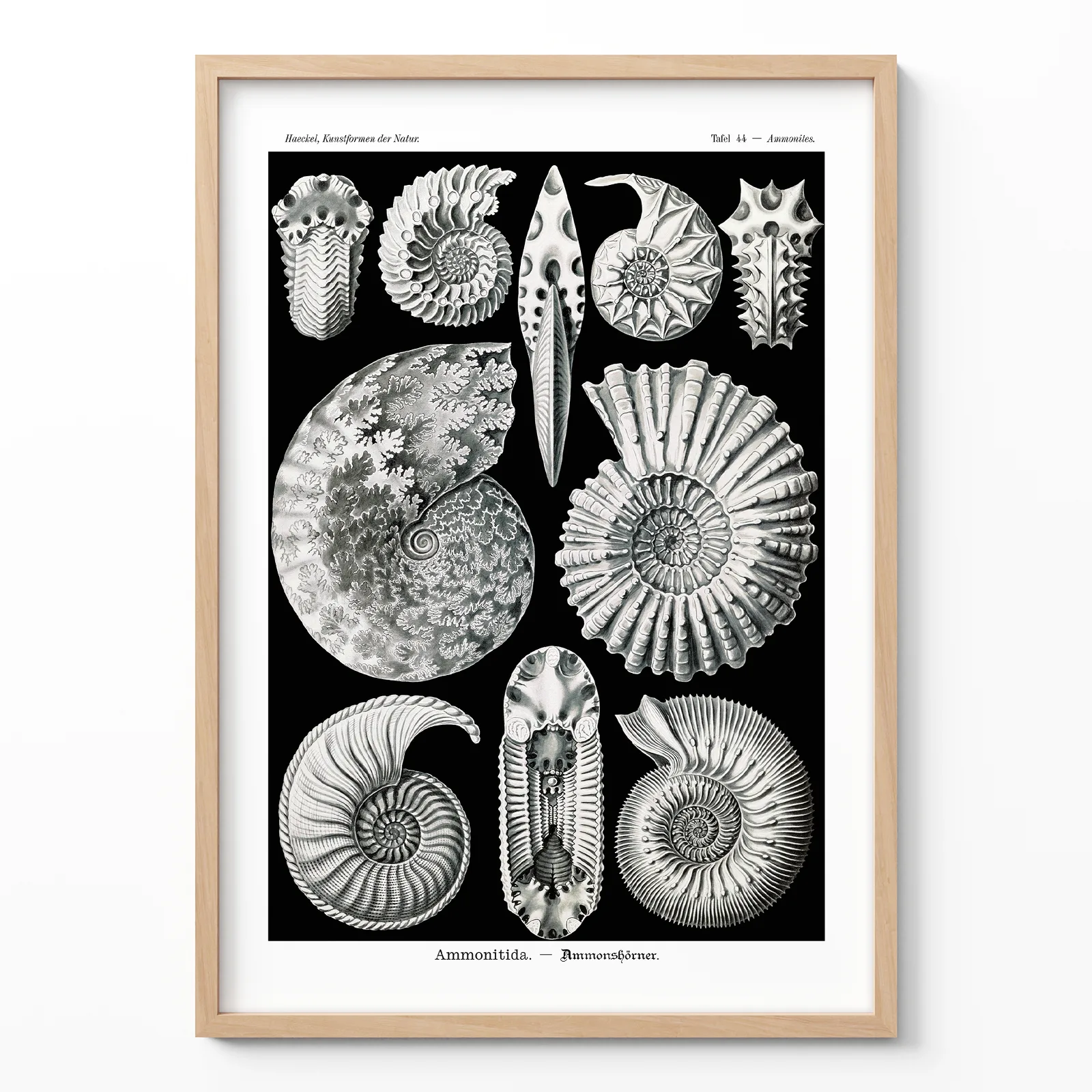 This Ernst Haeckel poster features a stunning collection of ammonite fossils, drawn with incredible precision and elegance. The sharp contrast of black and white, combined with detailed organic forms, creates a visually powerful statement that suits both modern and vintage interiors. Originally published in Haeckel’s Kunstformen der Natur, this print blends scientific knowledge with pure visual art. Ideal for offices, study spaces, or anyone who loves natural history. Printed on high-quality paper, this Ernst Haeckel poster makes complex beauty accessible for daily inspiration.