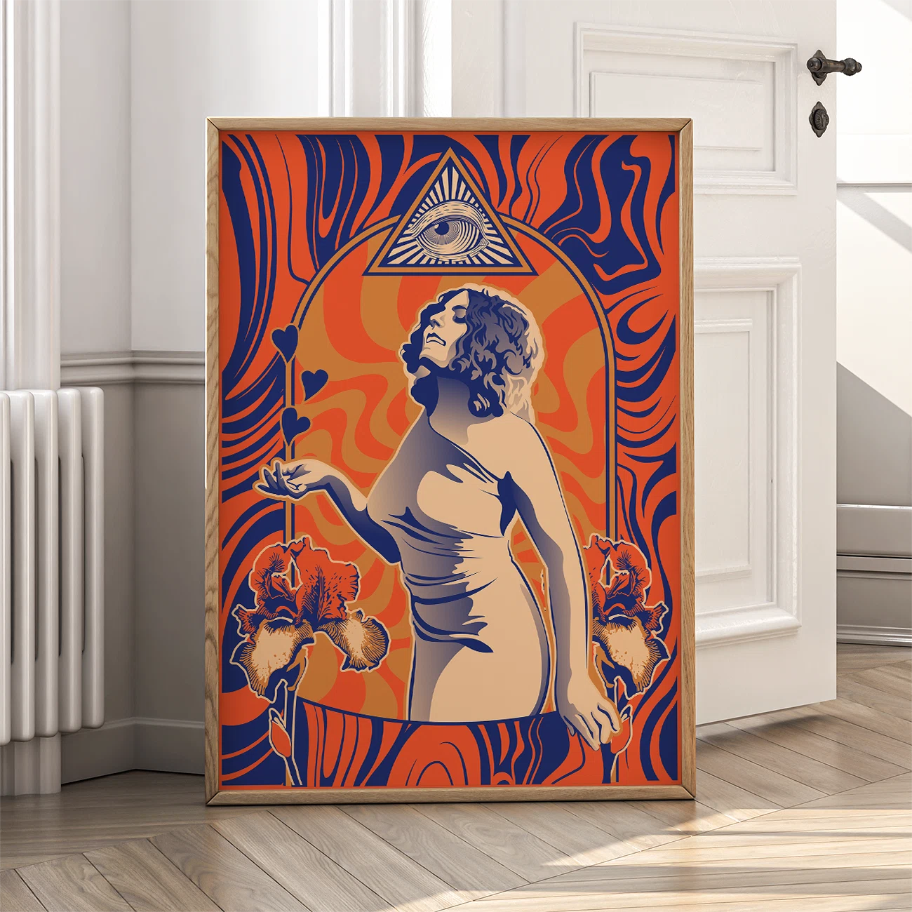 You can order our prints either framed or unframed. Our frames are crafted from lightweight pine wood, measuring 2 cm in width. Each frame includes an acrylic front protector and hanging hardware for easy setup.