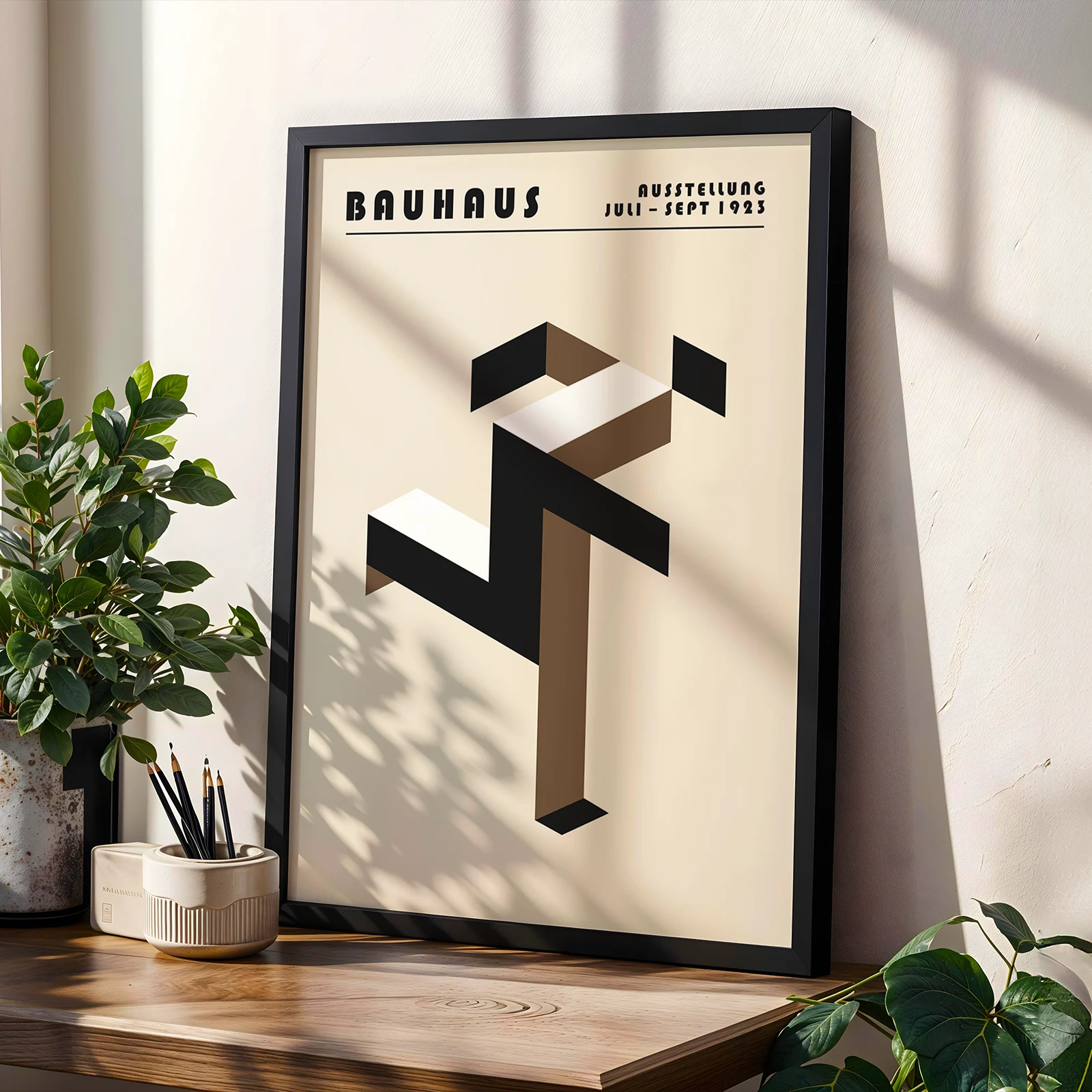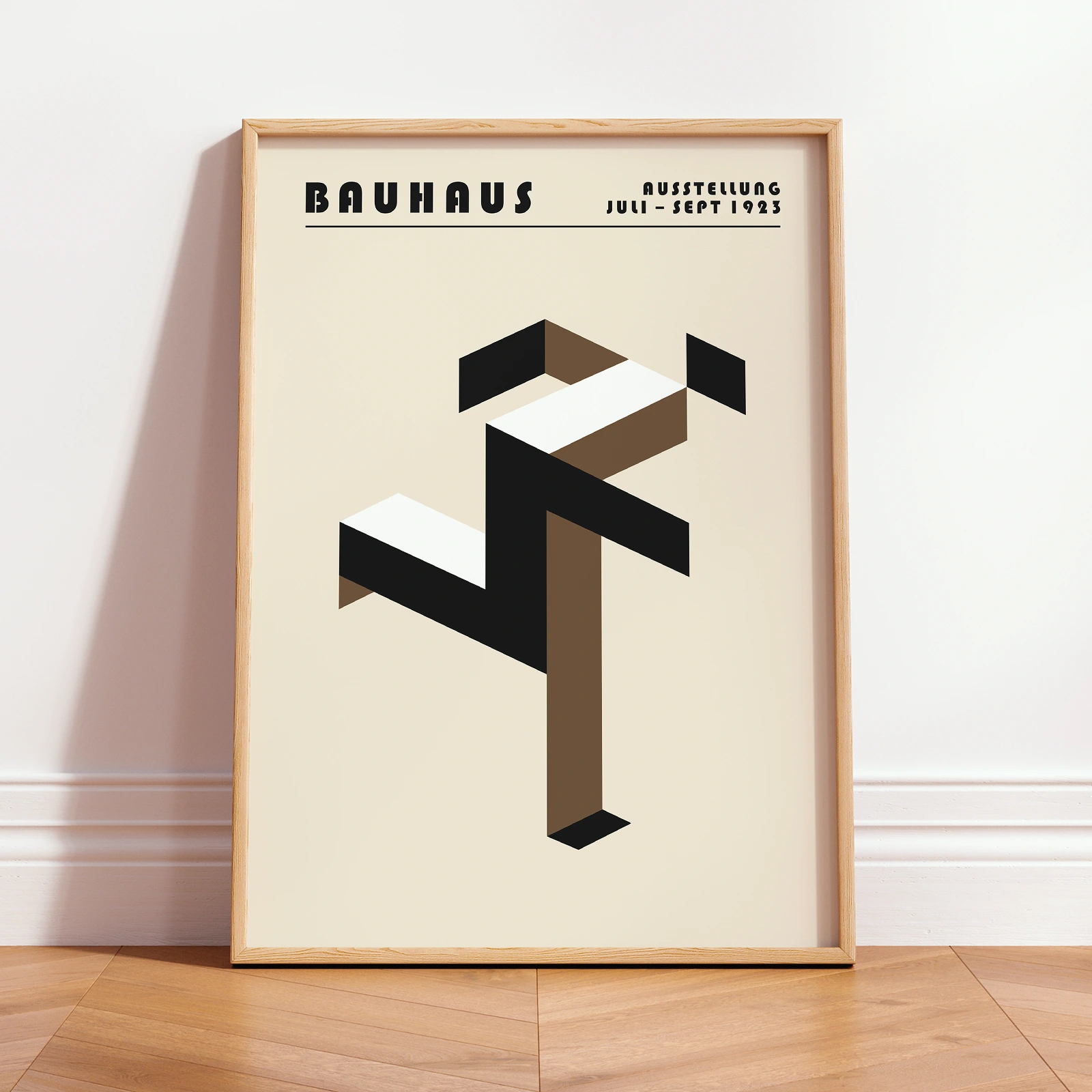 Art print Bauhaus brings pure geometric energy to your walls with the iconic “Running Man” design—bold shapes in warm beige tones dancing together to create a figure caught in motion. Every line and angle follows the classic Bauhaus rule that form meets function, turning simple rectangles and parallelograms into something that feels alive and dynamic. The clean composition against that soft beige background captures the movement’s love for simplicity without sacrificing energy or impact. This piece shows how smart design can tell a story using just basic shapes and thoughtful placement, making any space feel more engaging and sophisticated. Hang this art print Bauhaus and let its playful geometry bring that timeless revolutionary spirit into your home every single day.