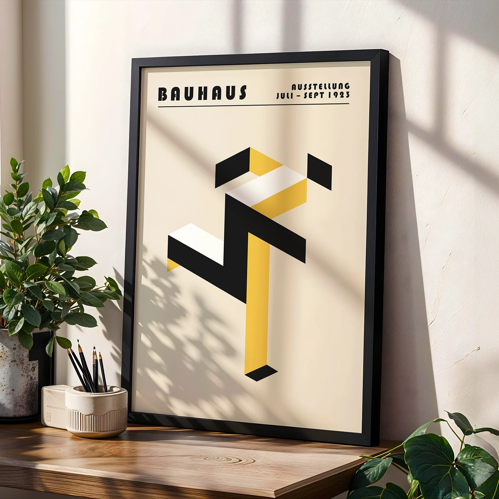 Art print Bauhaus brings the energy of geometric design right to your wall with the iconic “Running Man” poster—bold shapes in yellow and black dancing together to create a stylized figure caught mid-stride against a soft beige background. Every line and angle follows the movement’s smart rule that form meets function, turning simple rectangles and parallelograms into something that feels alive and full of movement. The clean composition captures that classic Bauhaus love for clear, purposeful design without losing any punch or character. This piece shows how good design can tell a whole story using just basic shapes and smart placement, making any room feel both modern and timeless. Hang this art print Bauhaus and let its playful geometry bring that revolutionary design spirit into your space every single day.