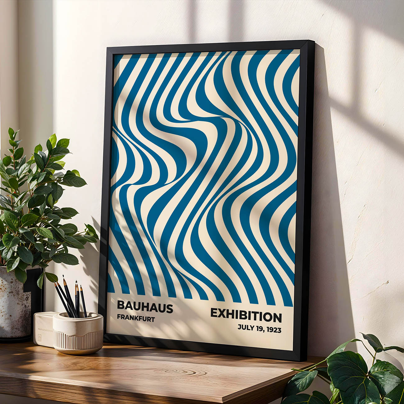 Bauhaus art print “Optic Waves” brings a burst of movement to your space—wavy blue stripes twist and turn over a warm cream background, catching your eye and making the room feel alive. Each curve follows that famous Bauhaus idea: keep things simple, but full of purpose and style. The playful pattern is both modern and classic, working perfectly for anyone who loves smart design with a touch of fun. As Mid Century wall art, this print bridges old-school cool and fresh energy, turning any wall into a conversation starter. Hang up this Bauhaus art print and let the waves of creativity flow every day.