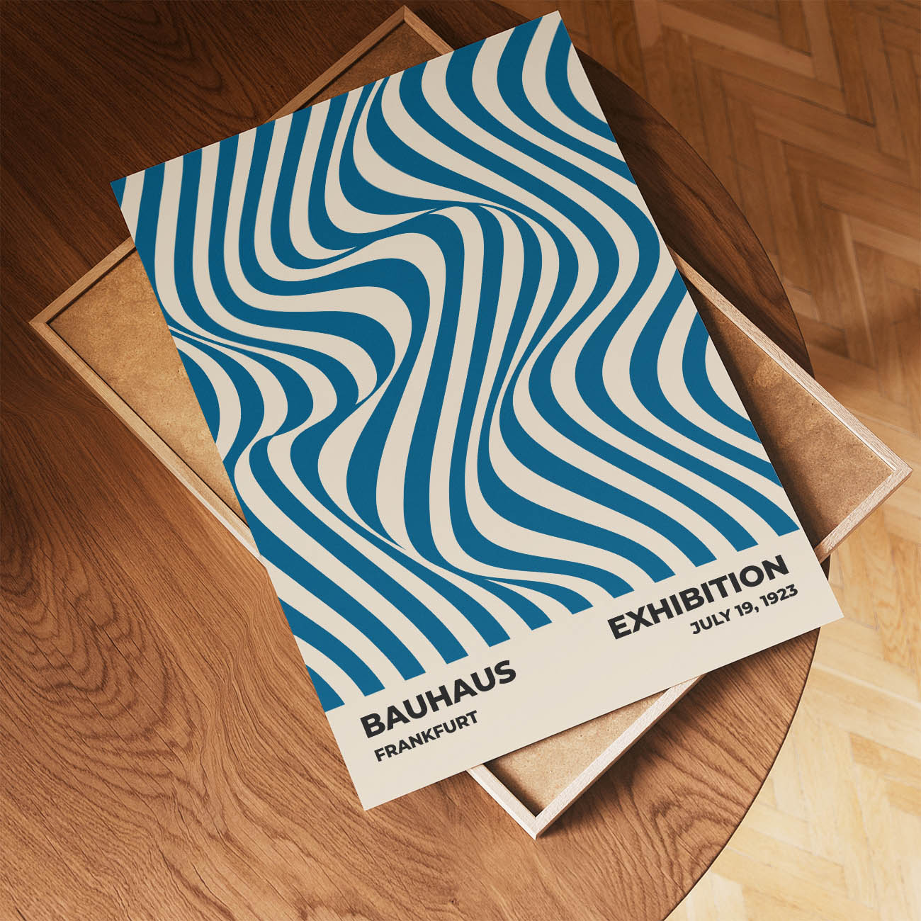 Bauhaus Art Print Optic Waves Blue – Mid Century Wall Art