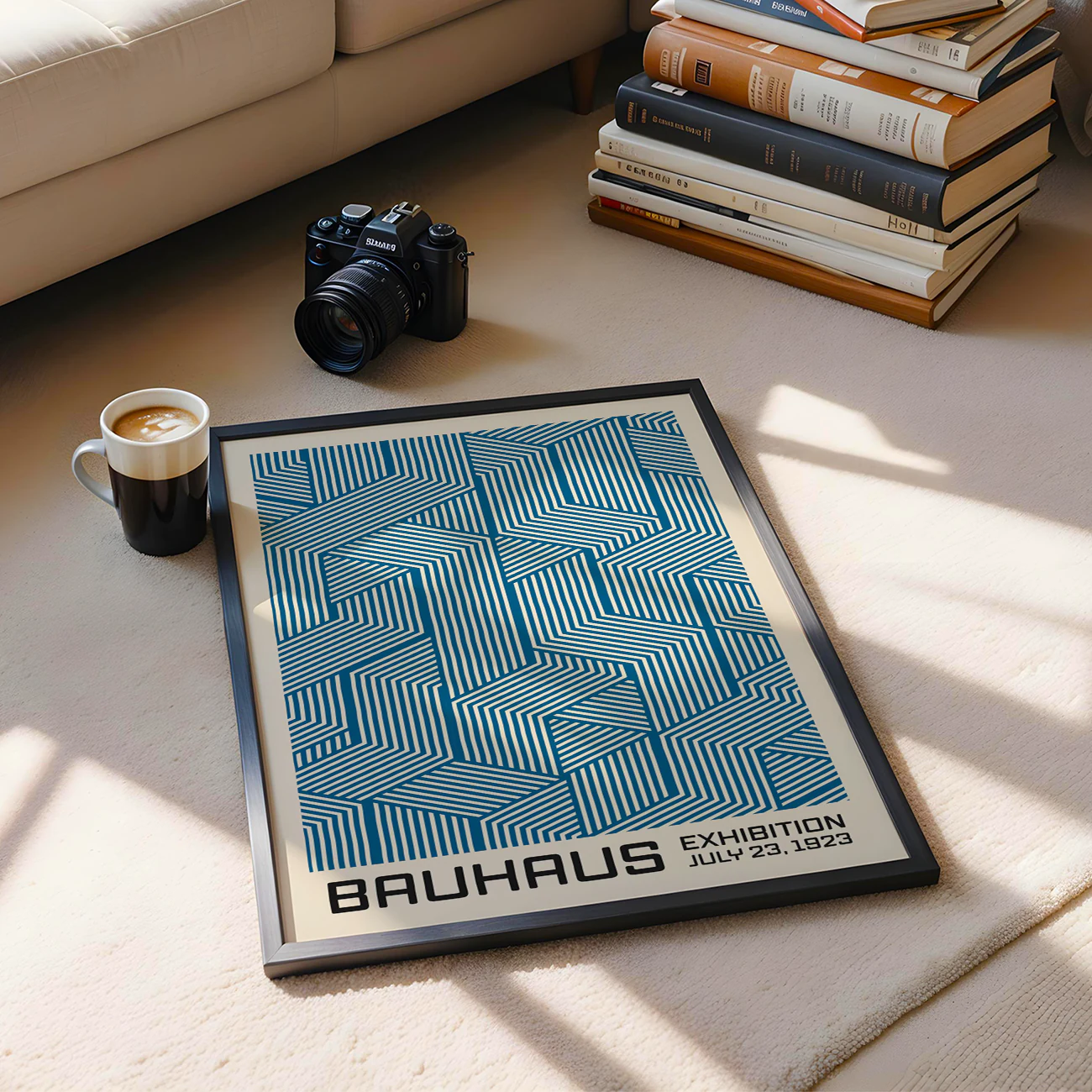 Bauhaus blue poster captivates your eye with an intricate maze of navy stripes and geometric shapes that seem to dance and shift across smooth cream paper. Designed in true Bauhaus tradition, every line and angle works together to create visual depth that’s both smart and stunning, proving that simple forms can make the biggest impact. As a piece of abstract wall art, this print brings sophisticated energy to any room—whether it’s anchoring a modern living space, adding character to a home office, or creating a focal point in a minimalist hallway. Transform your walls with this clever blend of pattern and purpose, and let this striking Bauhaus blue poster become your daily dose of design inspiration.