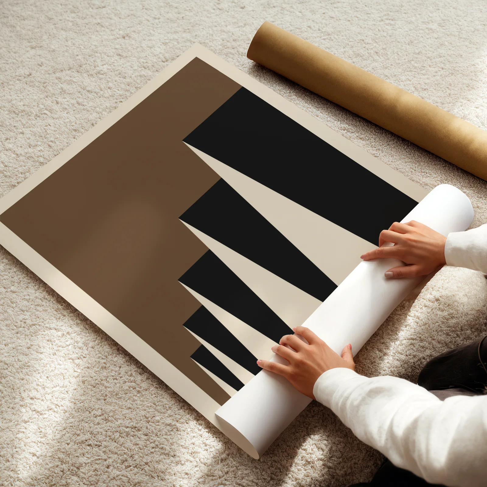 Transform your wall with a piece straight from the famous Bauhaus exhibition 1923, where bold black triangles step up against a warm brown sky like strong buildings reaching high. “Factory Roofs” shows how simple shapes can look both smart and beautiful—just what the design masters loved most. This retro art print brings classic style to any spot in your home, whether it’s hanging above your couch, brightening your office, or making a hallway more interesting. Let the energy of the Bauhaus exhibition 1923 add a touch of history and creativity to your everyday space.