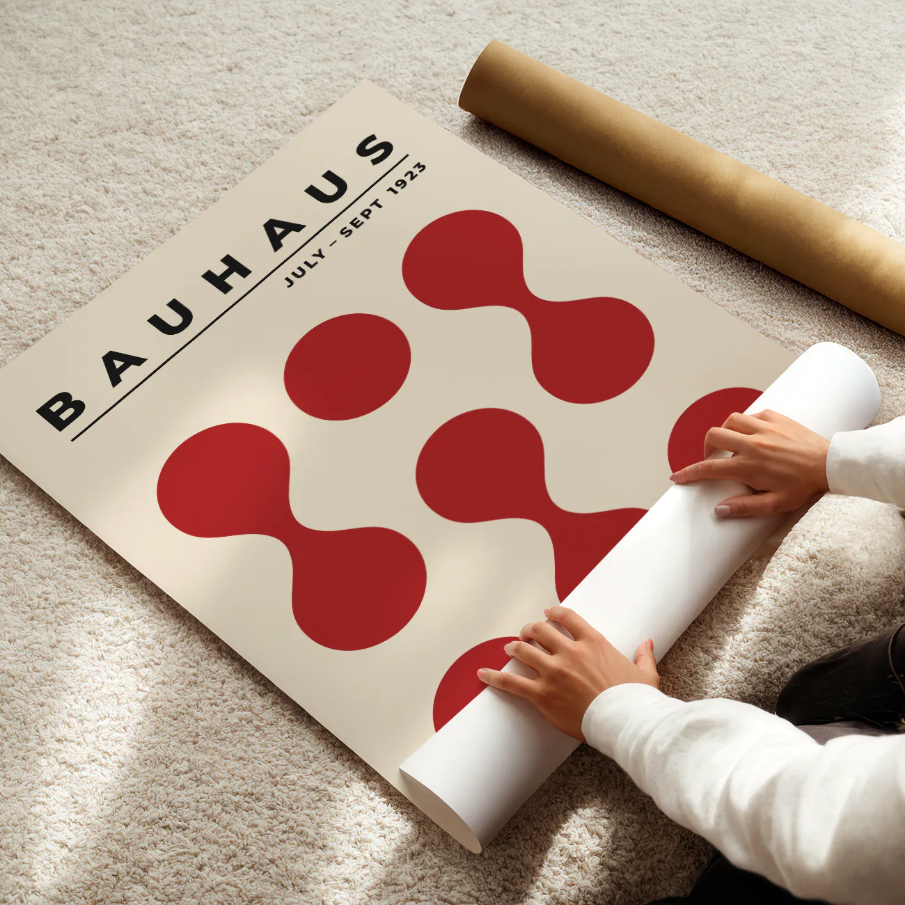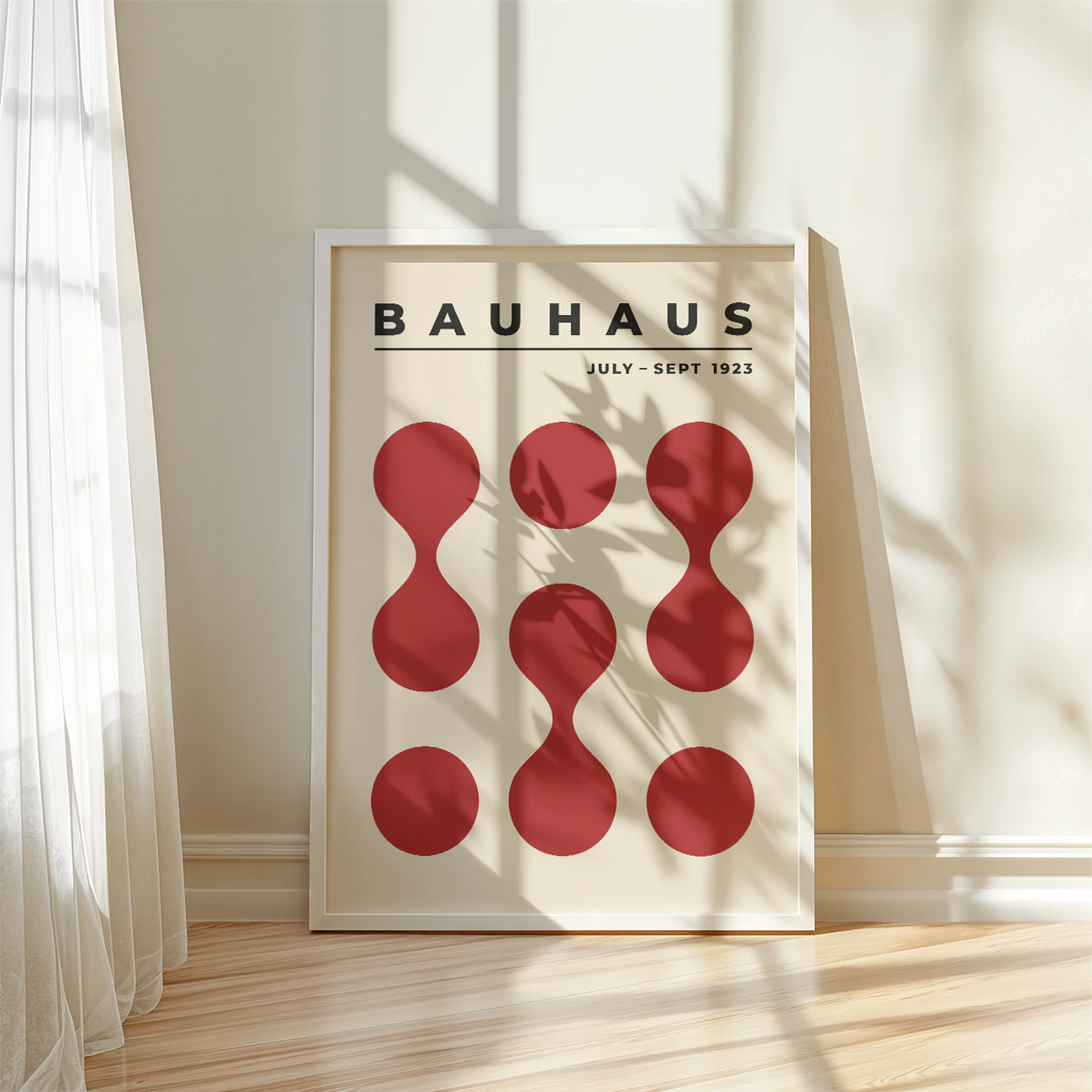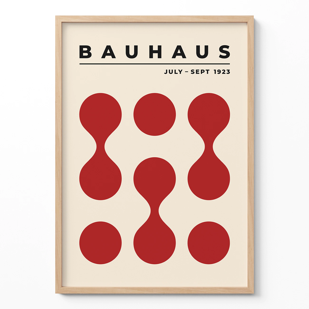 Bauhaus exhibition poster 1923 invites you to refresh your walls with a bold take on legendary design. “Circle Drops” plays with large, deep red drop-like shapes arranged in a playful pattern—showing how pure geometry and simple color can make any room feel more lively. This geometric wall art lifts the mood, matching perfectly with modern or classic décor. Let Bauhaus exhibition poster 1923 prove that crisp shapes and clever layouts are all you need to turn a blank wall into a fun, standout space inspired by true design mastery.