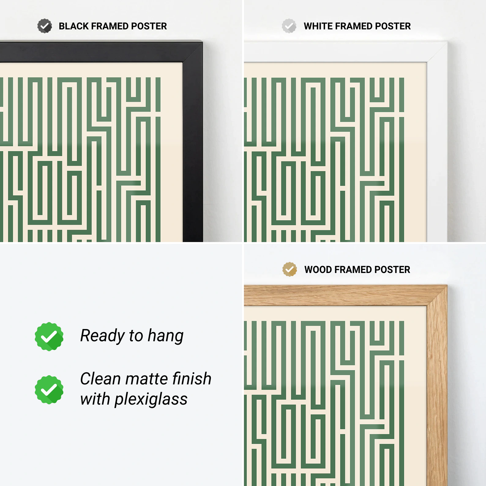 You can order our prints either framed or unframed. Our frames are crafted from lightweight pine wood, measuring 2 cm in width. Each frame includes an acrylic front protector and hanging hardware for easy setup.