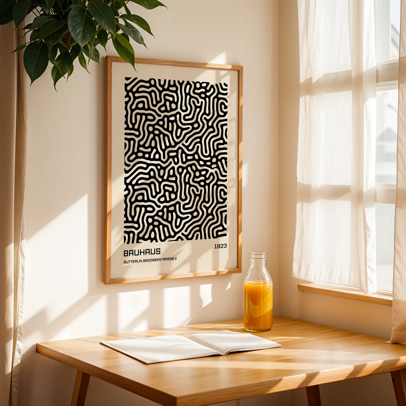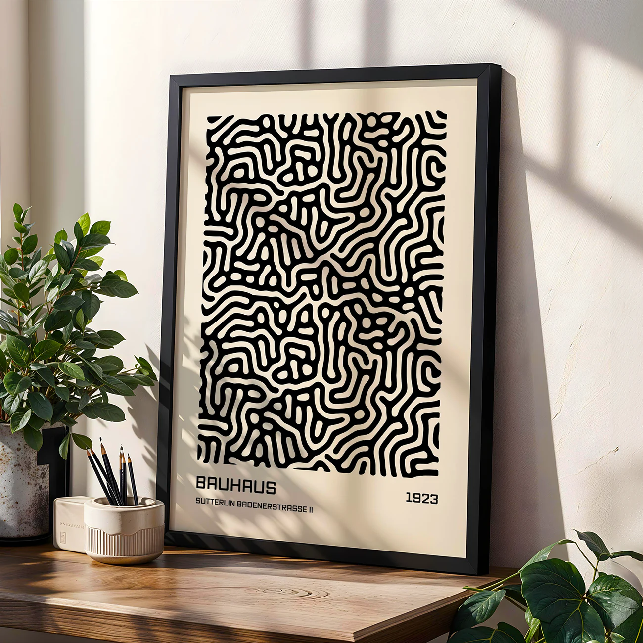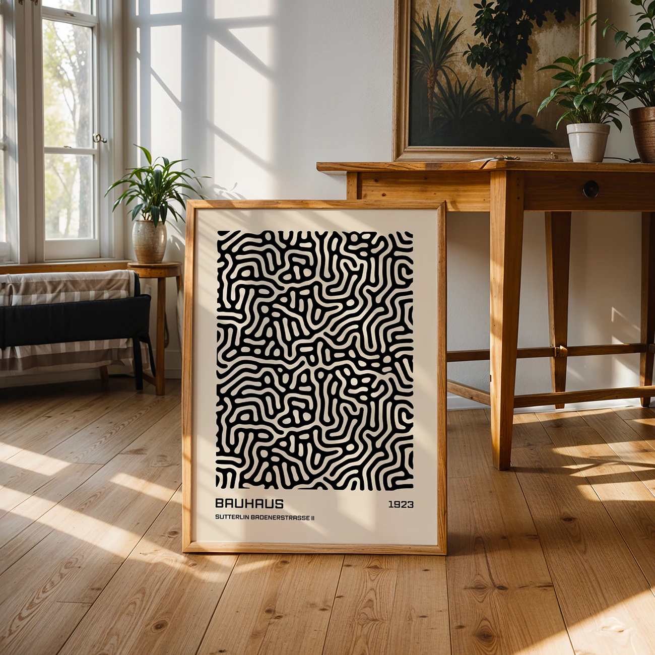 Bring timeless style into your interior with this striking Bauhaus modern art print. Featuring a black-and-cream abstract pattern, it’s perfect for lovers of minimalism, design history, or unique wall decor. Ideal for modern homes, creative studios, or office spaces, this print elevates any room with its rhythmic energy. Printed on premium-quality paper, it offers lasting aesthetic value. Let this Bauhaus modern design make a bold and sophisticated statement on your wall.