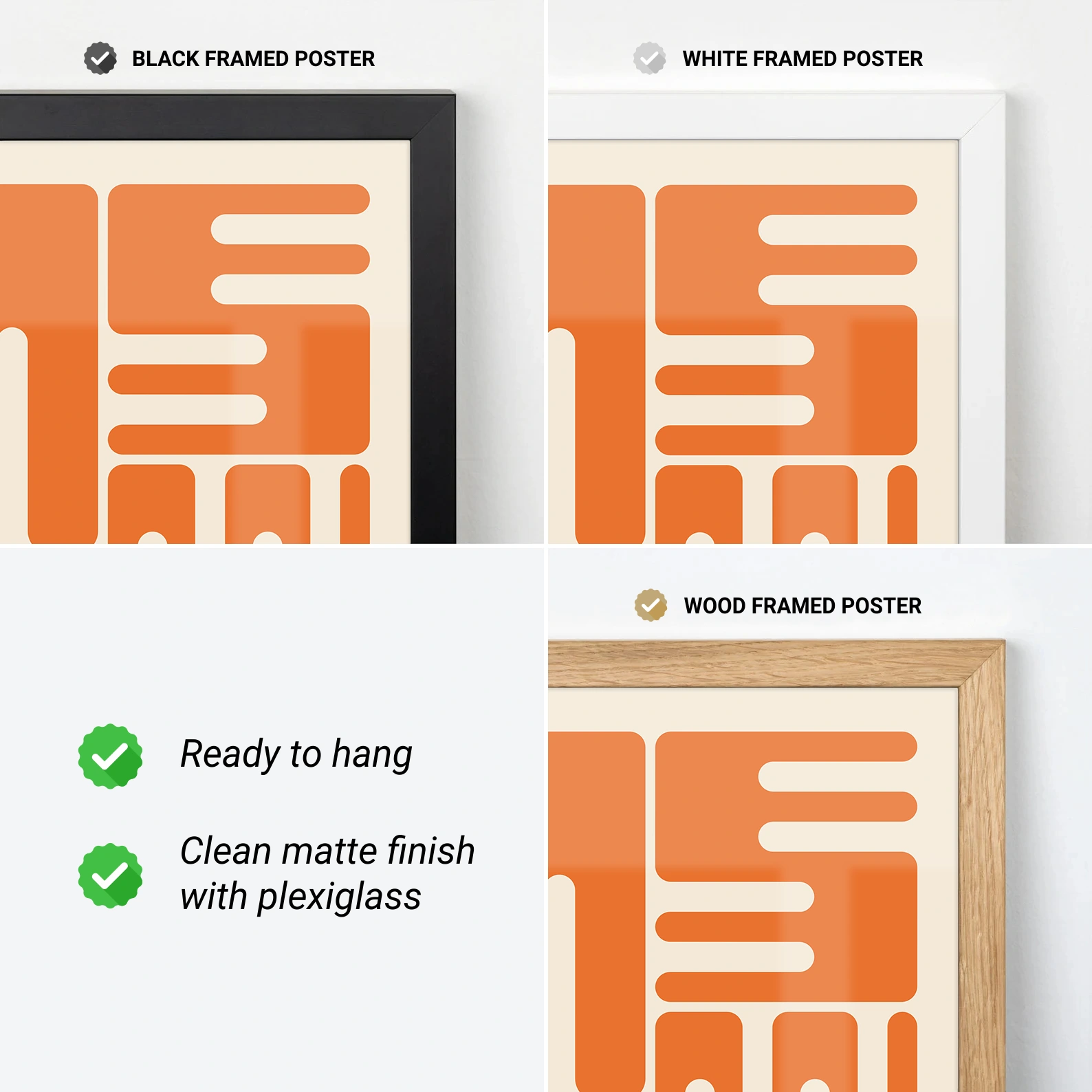 You can order our prints either framed or unframed. Our frames are crafted from lightweight pine wood, measuring 2 cm in width. Each frame includes an acrylic front protector and hanging hardware for easy setup.