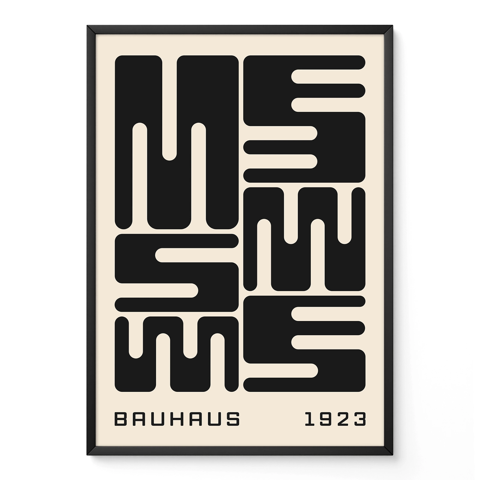 Bauhaus poster art meets bold typography in this striking design where flowing lines and sharp angles create a perfect balance of movement and structure. “Waves” captures the essence of classic Bauhaus thinking—turning simple black and white elements into something that feels both modern and timeless. The clean geometric forms dance across the paper, proving that smart design can be both serious and playful at once. As a minimalist retro print, it brings instant character to any wall, whether in your living room, office, or hallway. Let this Bauhaus poster art remind you that sometimes the most powerful statements come from the simplest ideas, turning your space into a celebration of pure, elegant design.