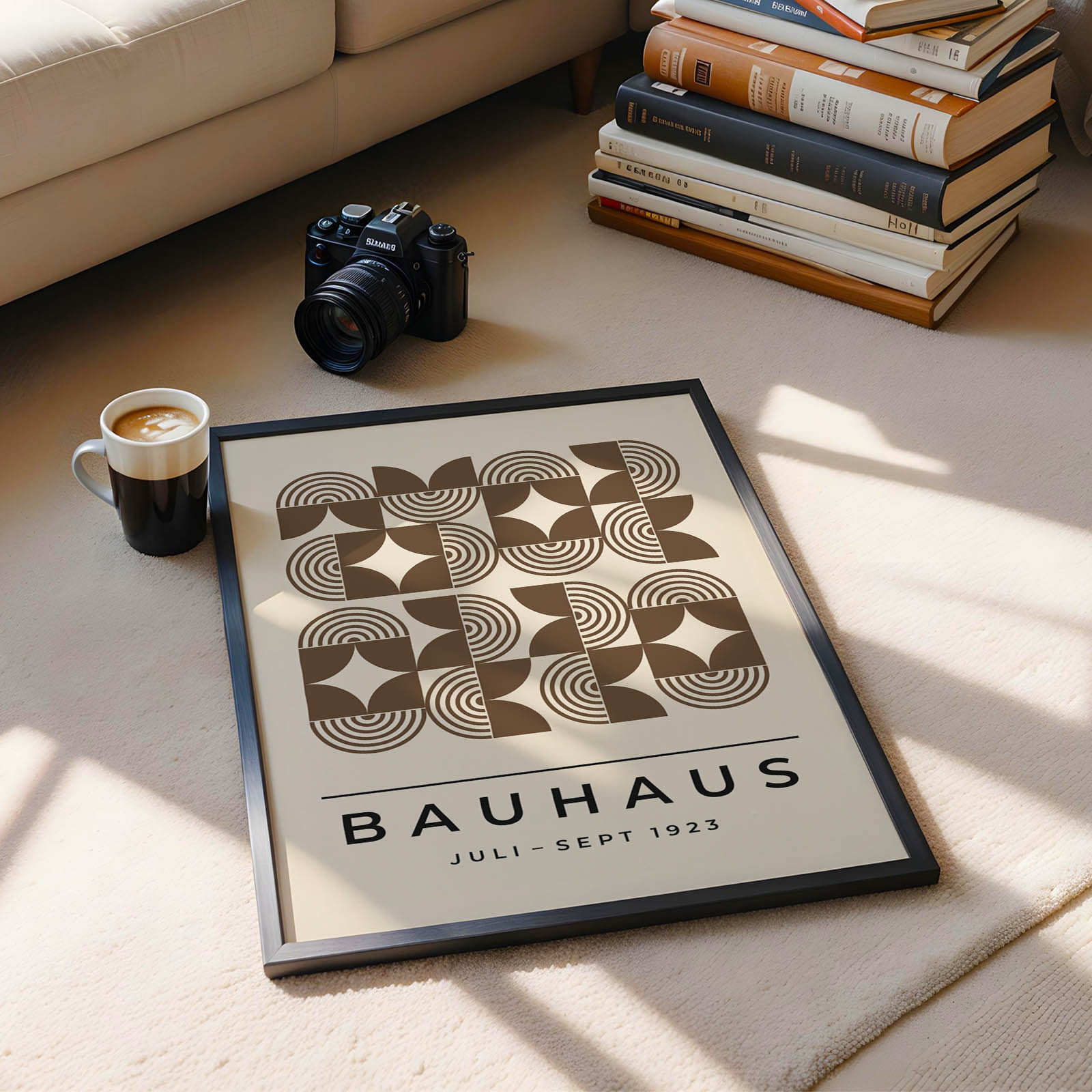 Bauhaus poster art brings timeless style to your space with its playful grid of rich brown circles, semicircles, and geometric patterns carefully arranged across soft cream paper. Each shape follows the classic Bauhaus belief that good design balances order with visual joy, creating artwork that feels both modern and wonderfully warm. This piece works perfectly as minimalist retro print that adds sophisticated charm without overwhelming your room, making it easy to match with any decor style. Hang this Bauhaus poster art and watch how its earthy tones and smart geometric layout transform any wall into a gallery-worthy focal point that never goes out of style.