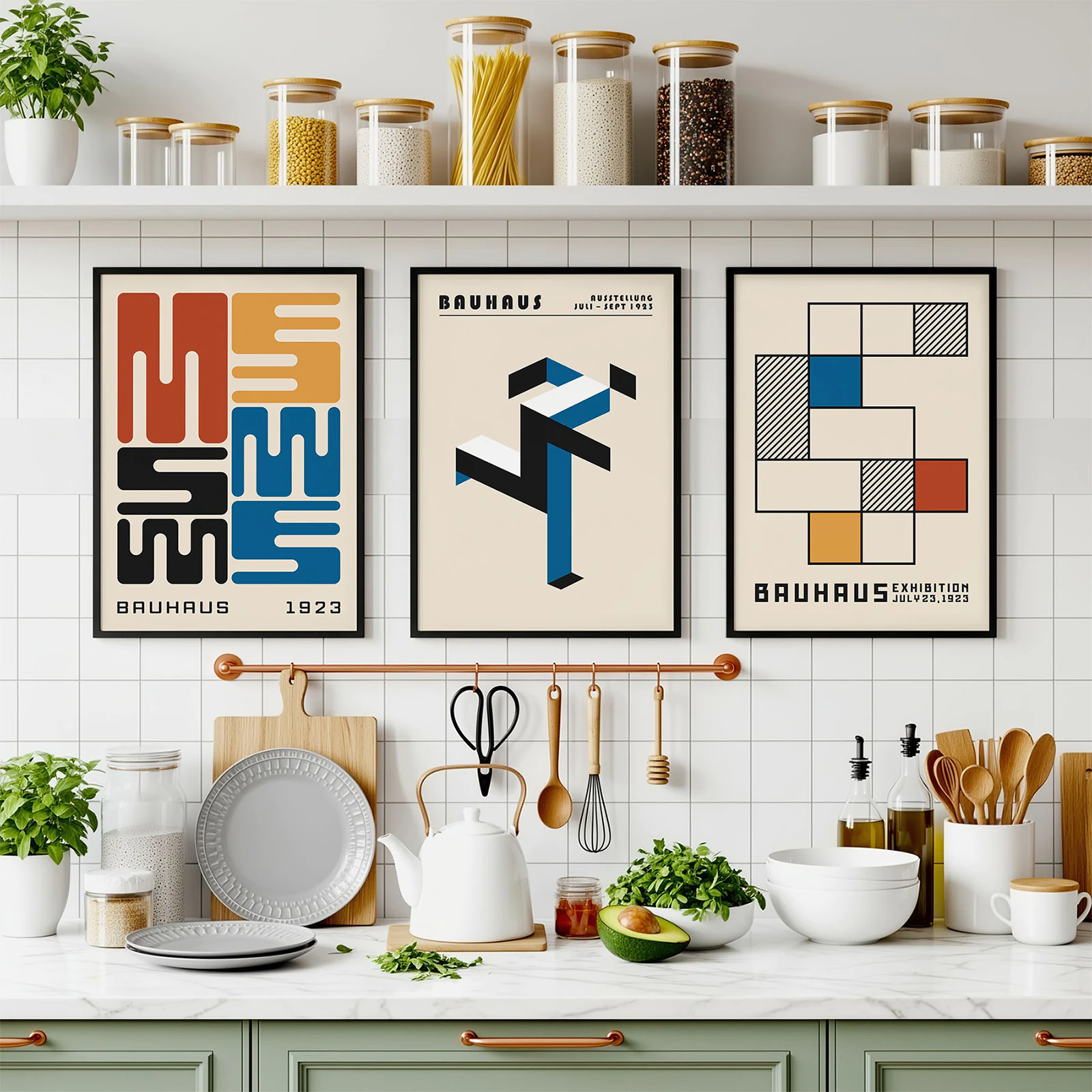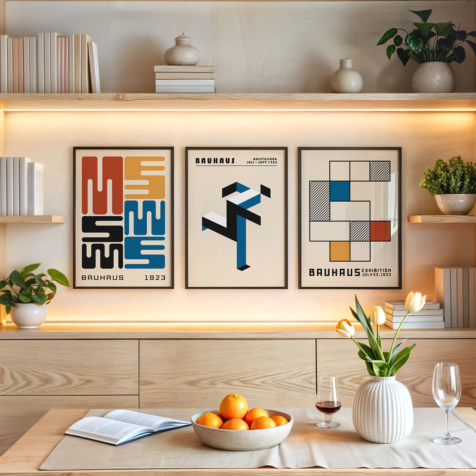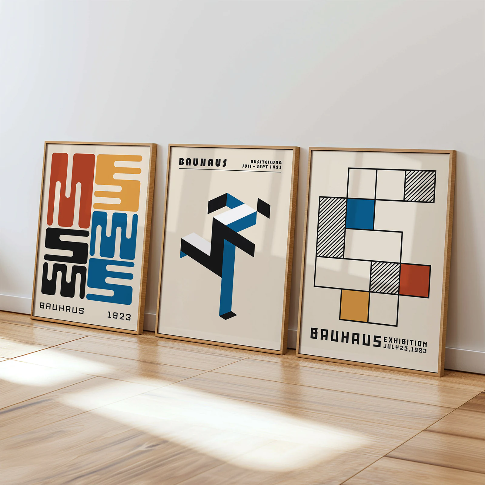 Bring bold color and timeless design into your space with this Bauhaus posters set. Featuring three striking abstract prints inspired by the iconic 1920s movement, this set adds a perfect touch of modernist charm to your home, office, or gallery wall. The posters set blends geometric shapes, clean lines, and rich tones to create a standout decor piece for any interior.