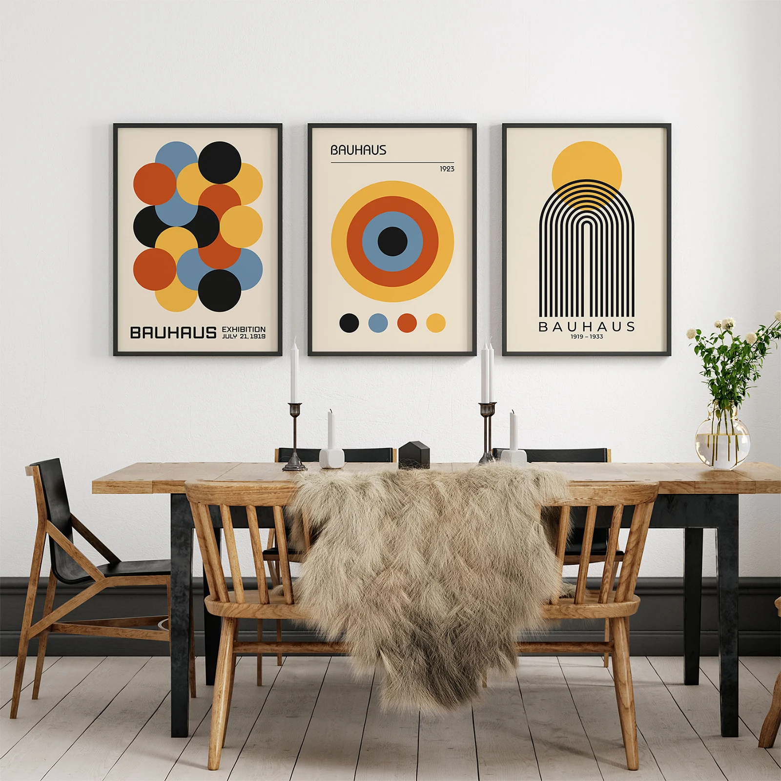 Add bold character to your walls with this Bauhaus set poster featuring three abstract compositions in rich, retro tones. Inspired by iconic modernist design, this set poster is perfect for elevating your home, office, or creative space. Clean lines, geometric shapes, and vintage color palettes create a striking visual statement that never goes out of style.