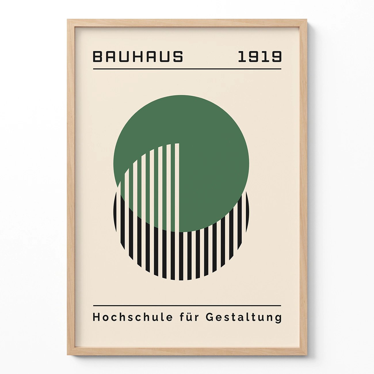 Bauhaus vintage poster brings a fresh look to your room with two overlapping circles in deep green and bold black stripes on creamy paper. Named “Circle Lines,” this design shows how simple shapes can create a fun rhythm on your wall. Expertly balanced curves and straight lines give a calm, friendly feel that works in any space. As a minimalist retro print, it fits perfectly above a sofa, beside your desk, or in a hallway—adding style without clutter. Trust this Bauhaus vintage poster to add a touch of art history and playful energy, making your home feel warm and inviting every day.