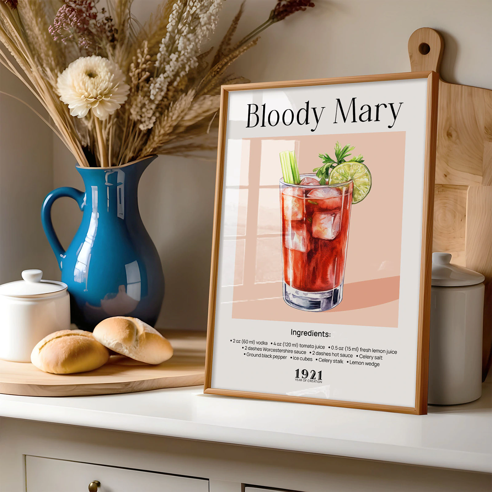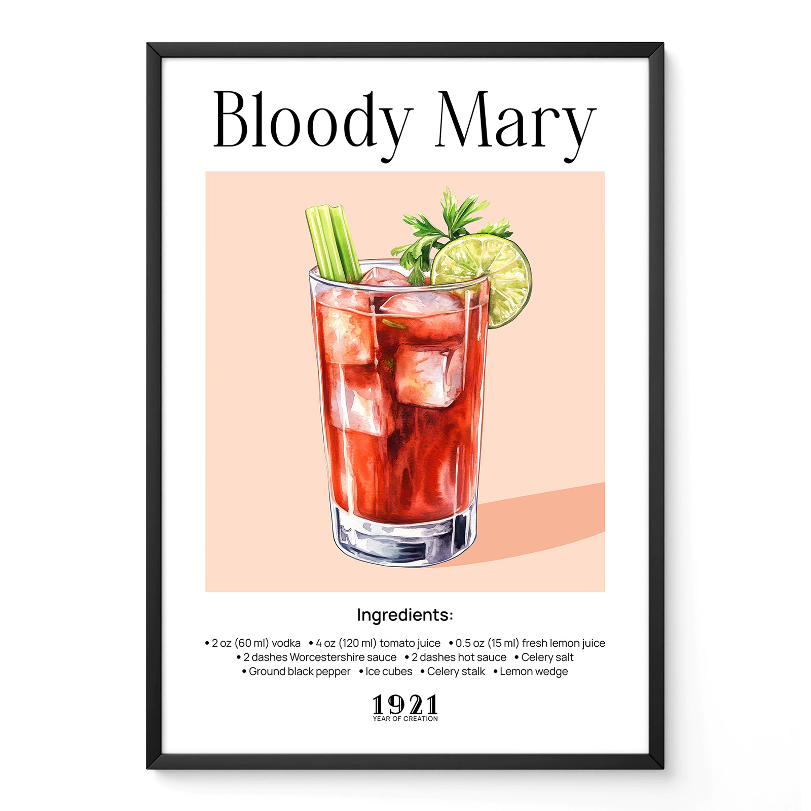 Bloody Mary Retro Cocktail Poster – Bar Cart Print