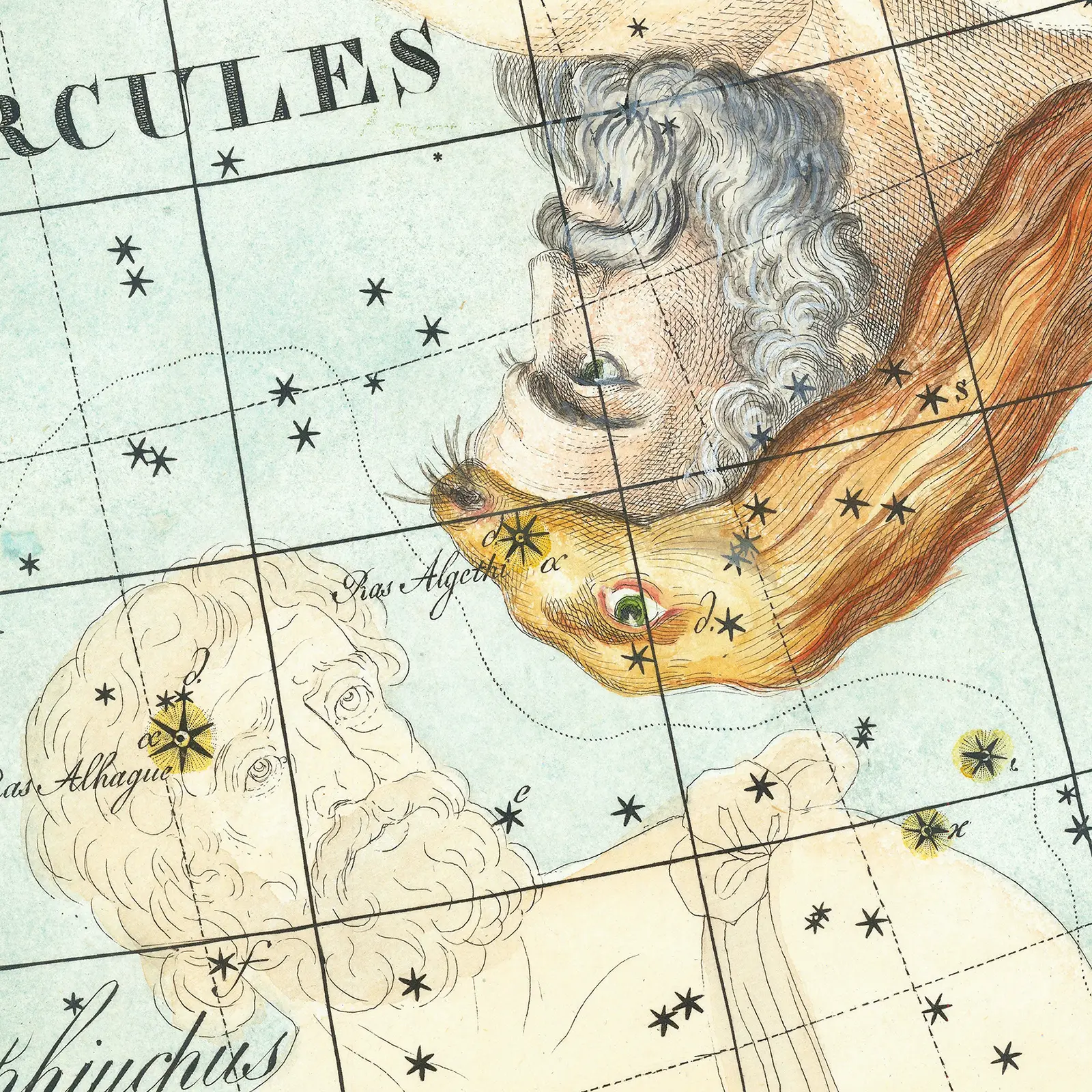 This vintage artwork featuring the cygnus constellation is a beautiful early 19th century reproduction created by a German artist, astronomer, and mathematician. The soft pastel sky, fine star lines, and mythological figures give the print a calm and elegant feeling. It fits perfectly in a study, library, living room, or even a creative workspace where you want a touch of history and wonder. Printed on high quality paper, this detailed cygnus constellation artwork brings classic celestial charm into any space.