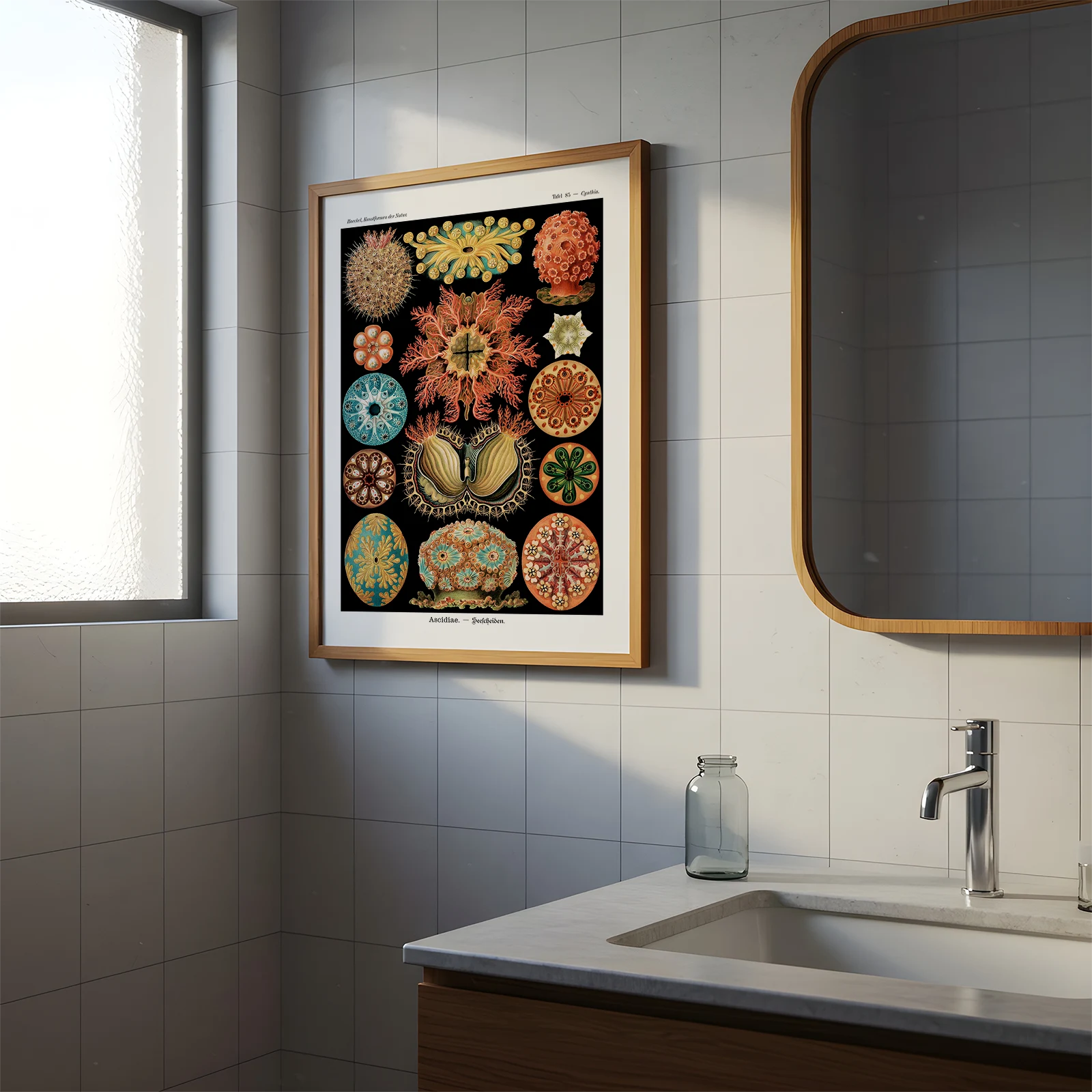 This Ernst Haeckel print showcases a fascinating array of sea squirts, or ascidiae, in a vibrant and detailed composition. Each form is illustrated with striking colors, symmetrical beauty, and natural complexity that makes this print perfect for science lovers, marine enthusiasts, or anyone who enjoys unique wall art. Originally part of Haeckel’s Art Forms of Nature, it captures the intersection of biology and design. Printed on high-quality paper, it brings these delicate ocean creatures to life. Add curiosity and color to your walls with this Ernst Haeckel artwork.