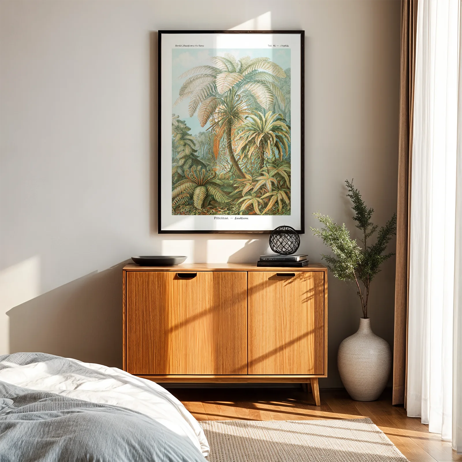 This fern botanical print by Ernst Haeckel captures a lush and detailed view of ancient plant life with artistic elegance. The flowing fronds and soft green hues offer a peaceful, nature-inspired aesthetic that works beautifully in living rooms, reading spaces, or plant-filled corners. Taken from his legendary Art Forms of Nature series, the artwork combines scientific study with fine decorative style. Printed on high-quality paper, it brings every leafy texture and form to life. Let this fern botanical print grow a natural sense of calm in your home.