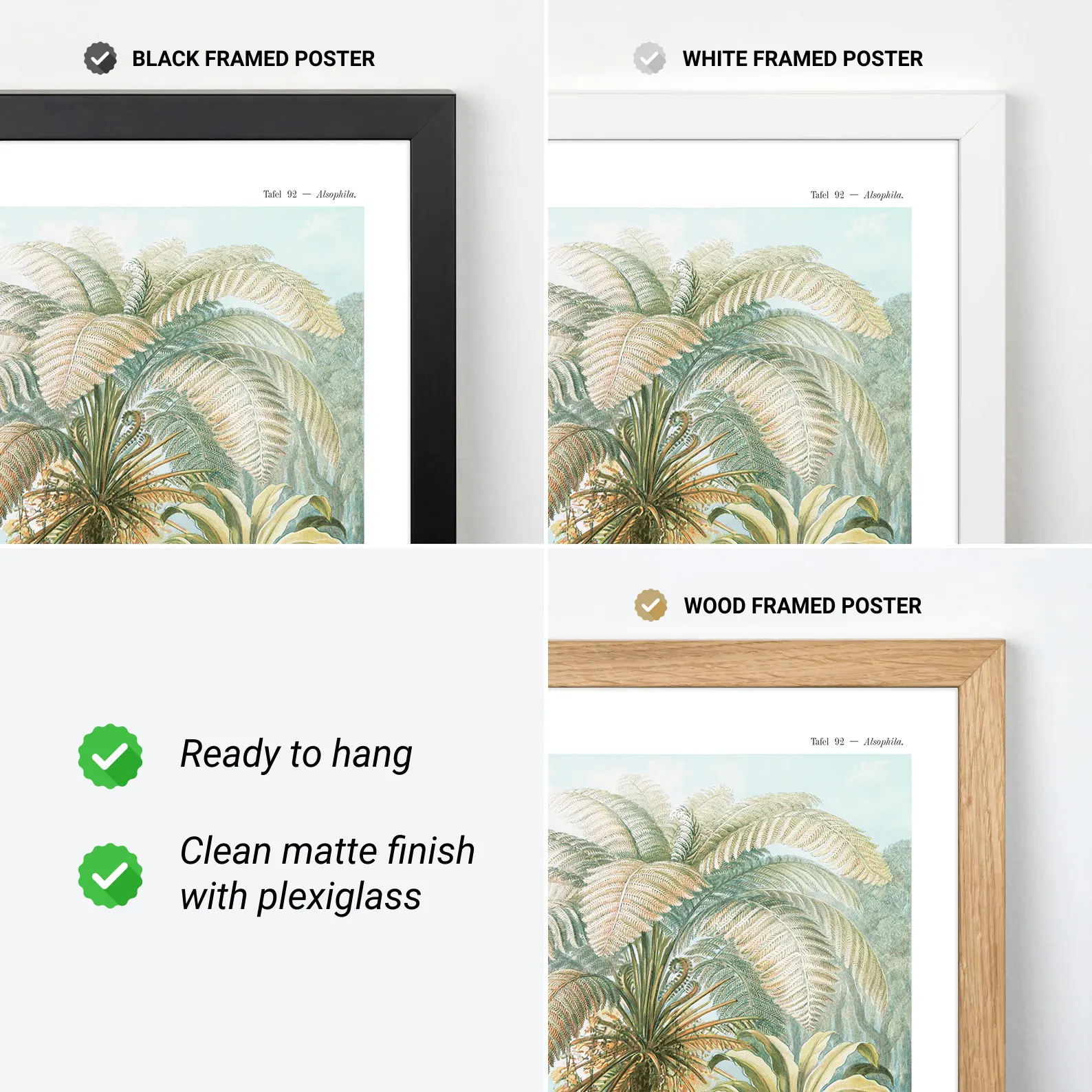 You can order our prints either framed or unframed. Our frames are crafted from lightweight pine wood, measuring 2 cm in width. Each frame includes an acrylic front protector and hanging hardware for easy setup.