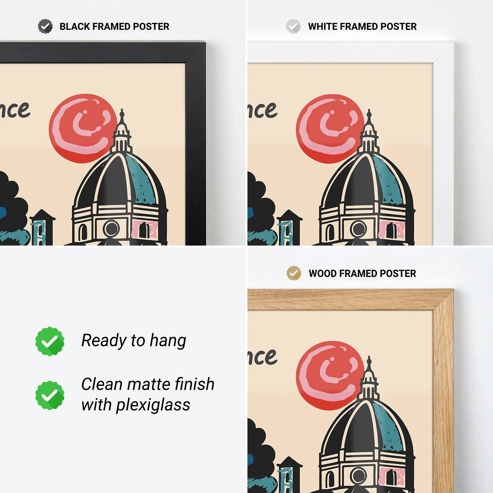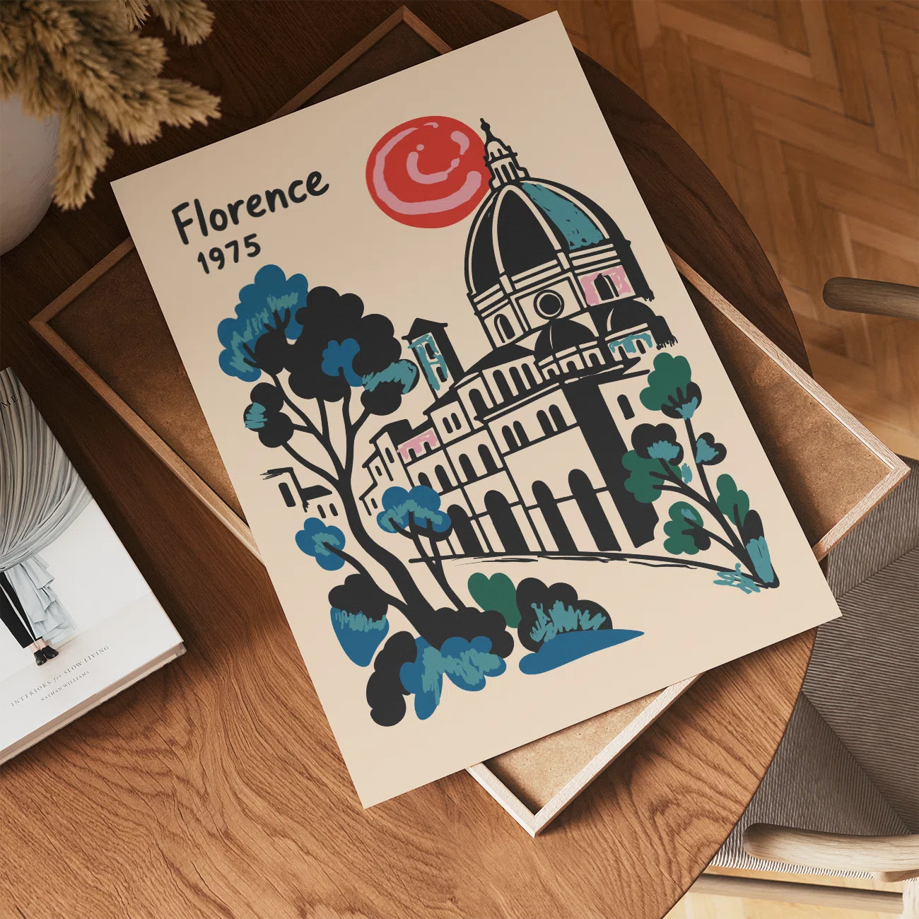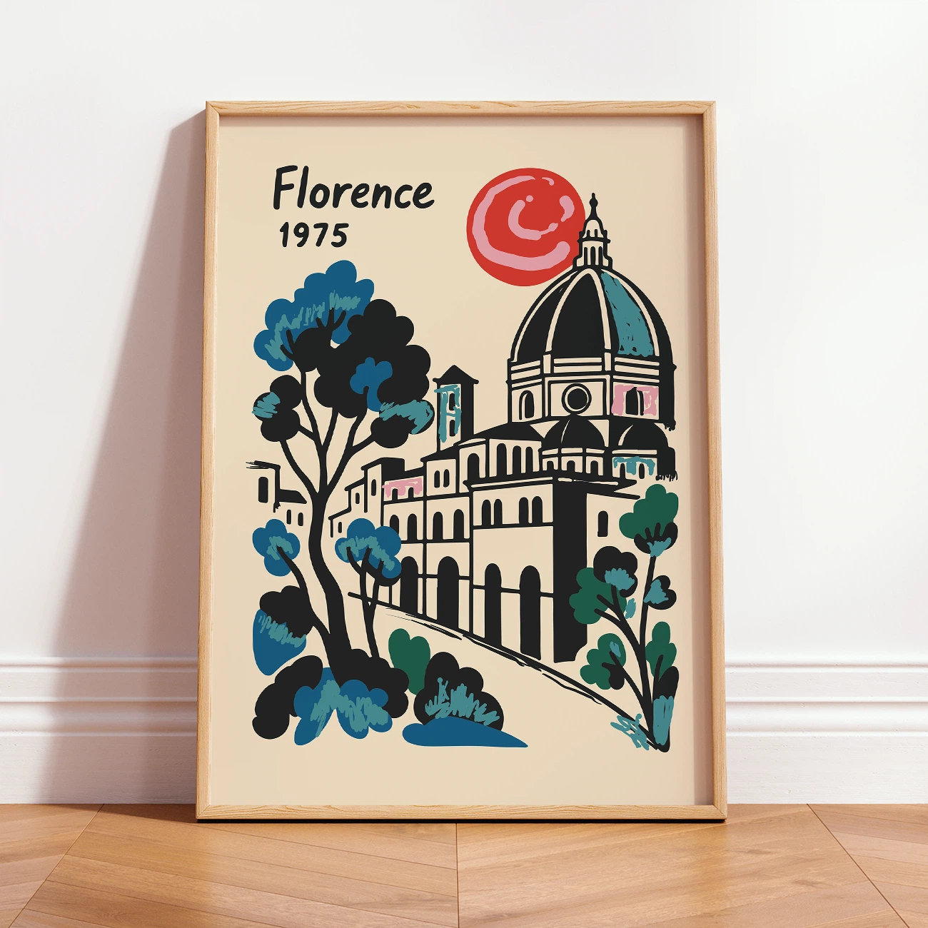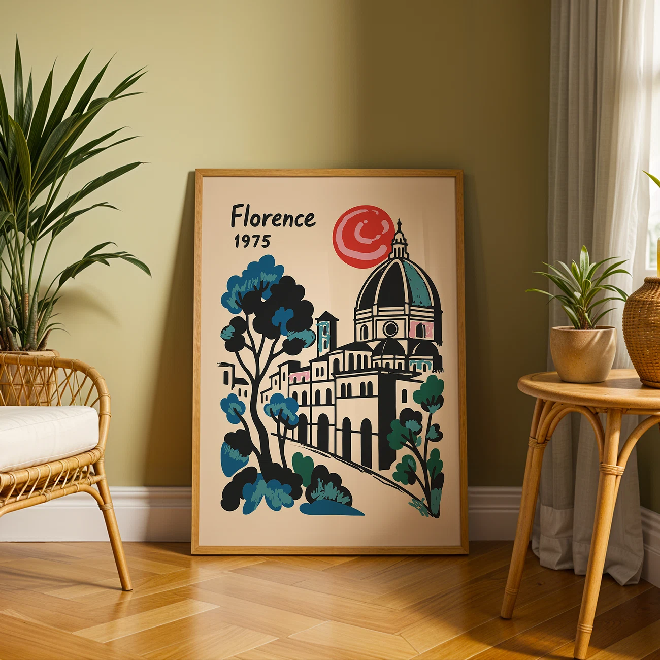 This beautifully illustrated Florence poster captures the elegance of Italian architecture with bold, hand-drawn lines and vintage-inspired colors. The scene shows the iconic dome of Florence surrounded by trees and a glowing red sun, adding warmth and nostalgia. Ideal for travel lovers, cityscape fans, or anyone who wants to bring a piece of Italy into their space. It’s printed on premium matte paper for high quality and durability. You’ll love the mix of history, design, and charm in this standout Florence poster for your home or studio.