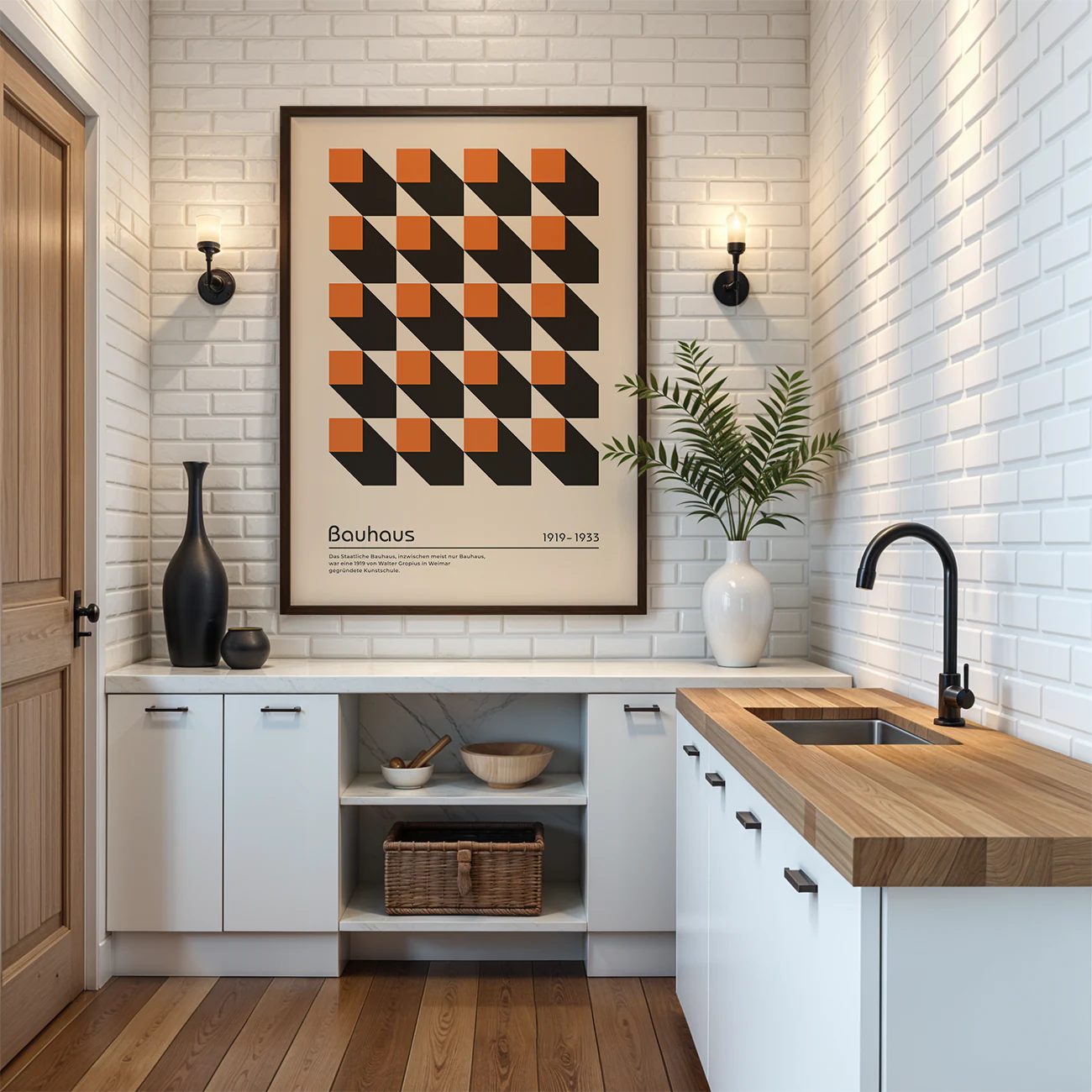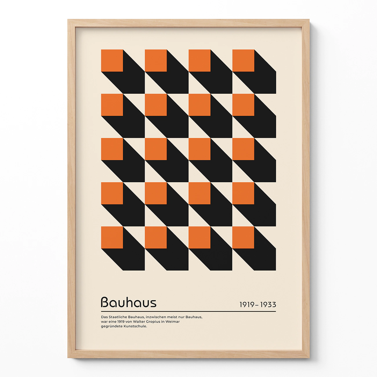 Geometric Abstract Wall Art – Orange Bauhaus Poster
