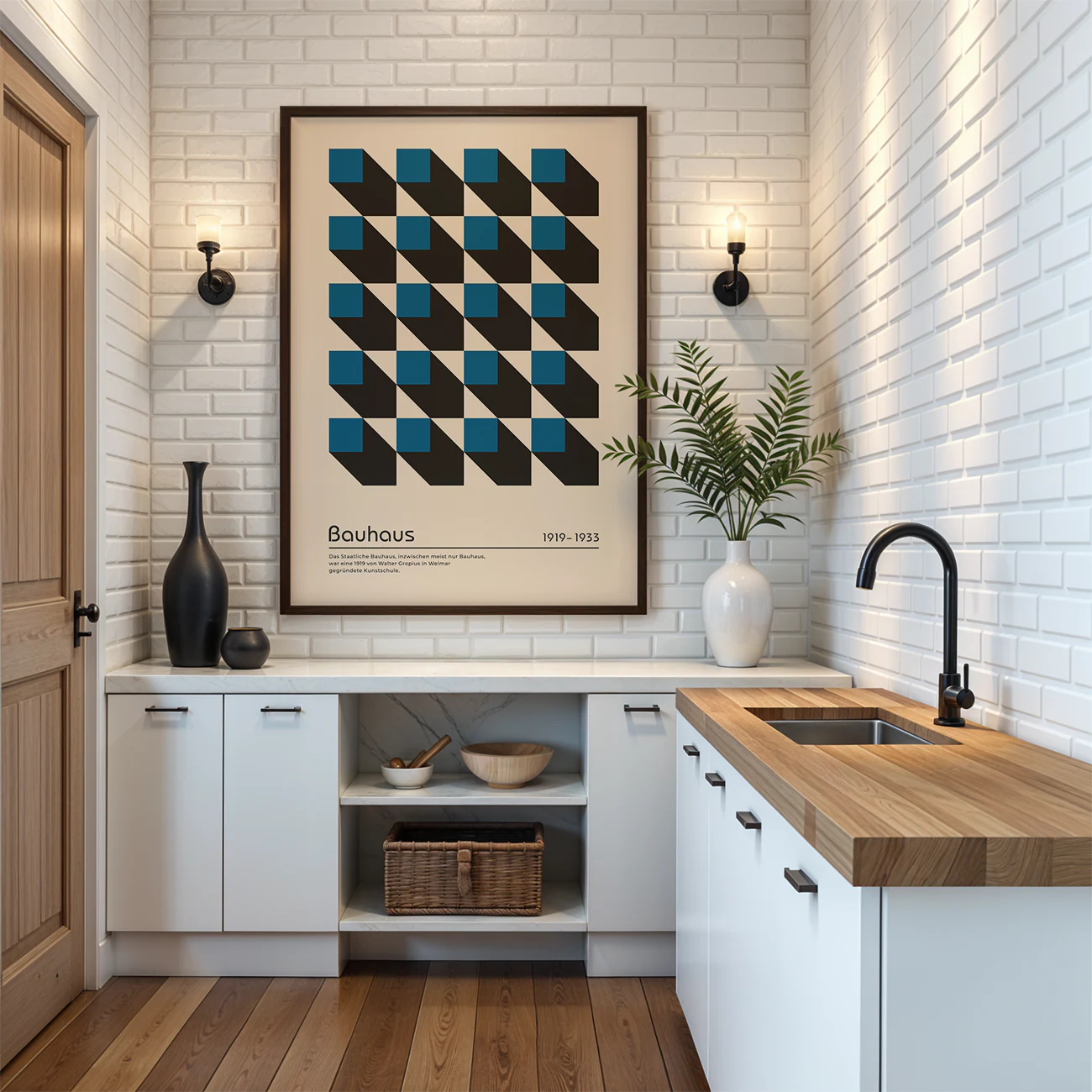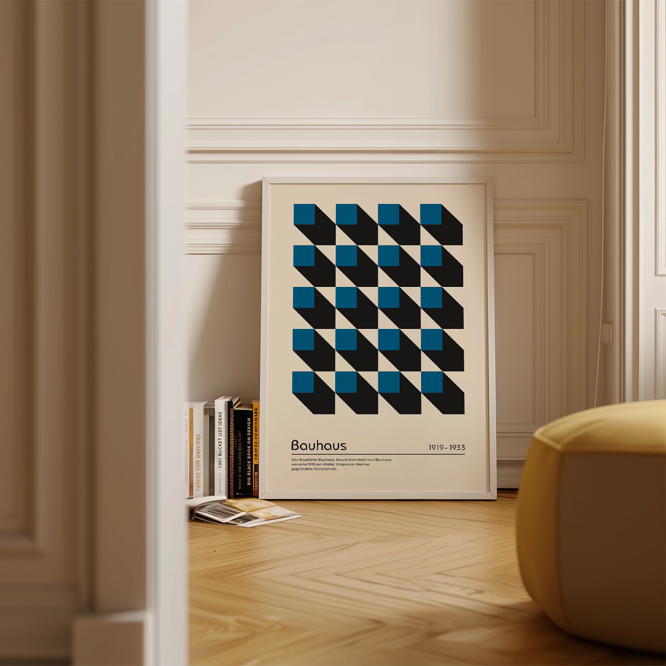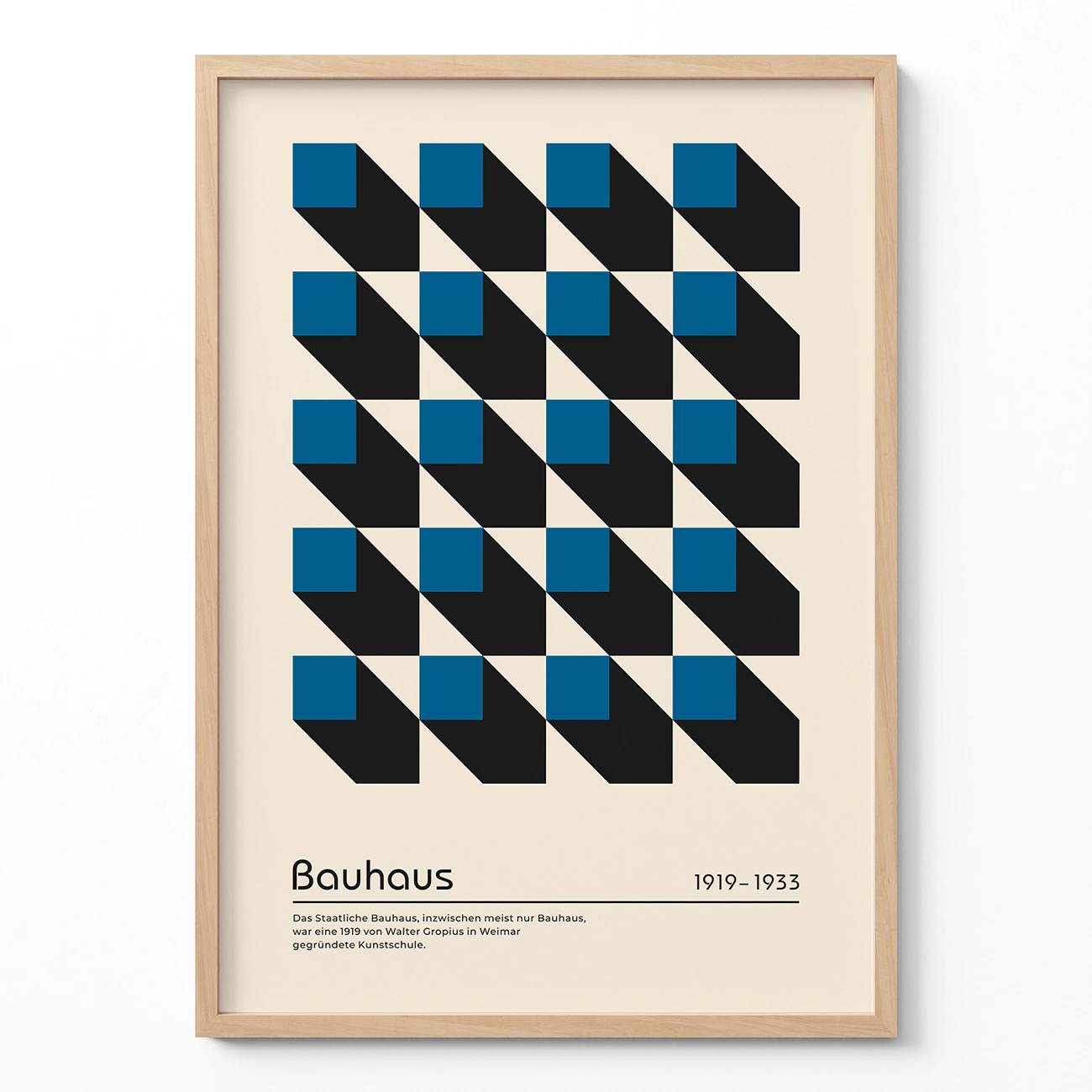 Geometric Wall Decor – Blue Bauhaus Poster Cubic Perspective