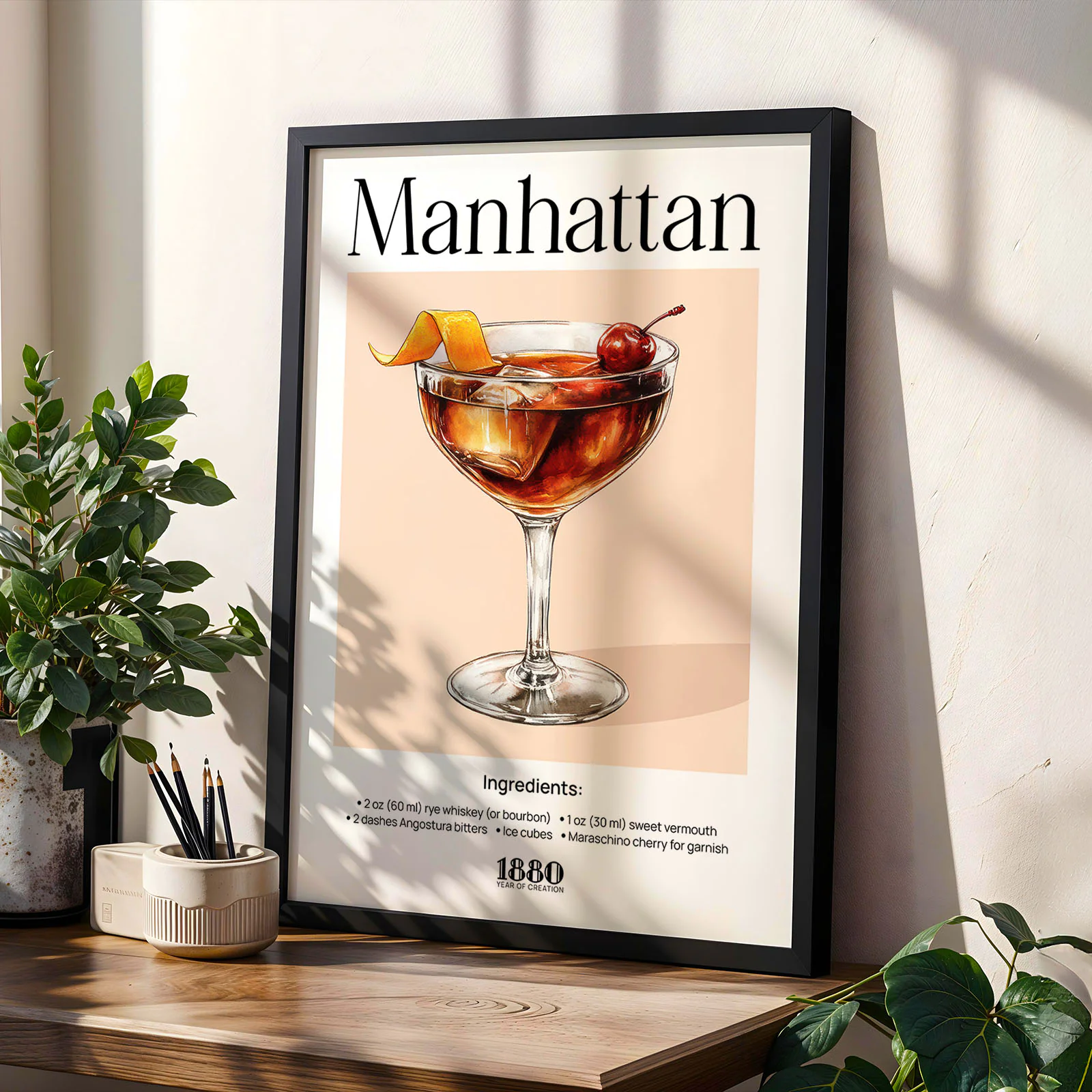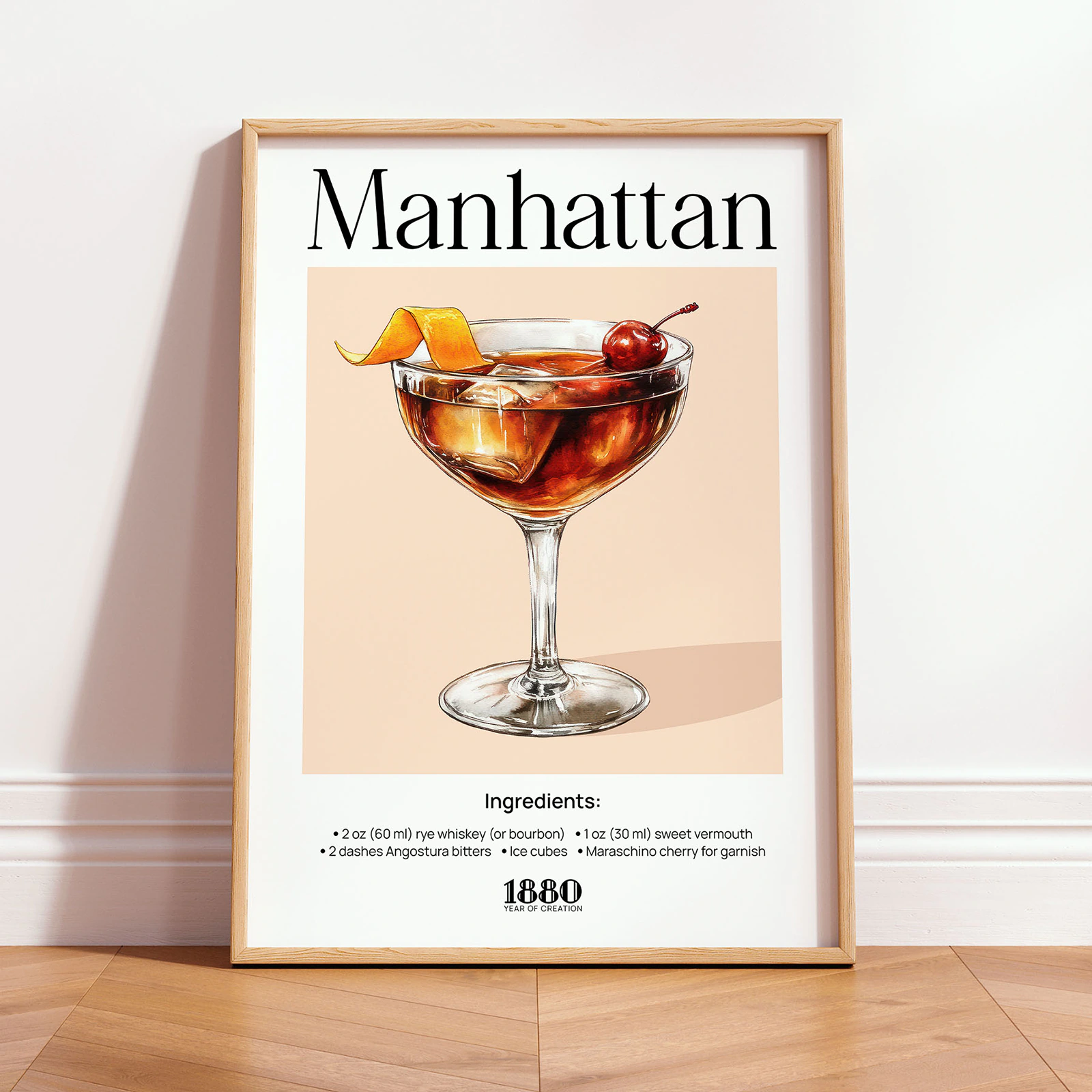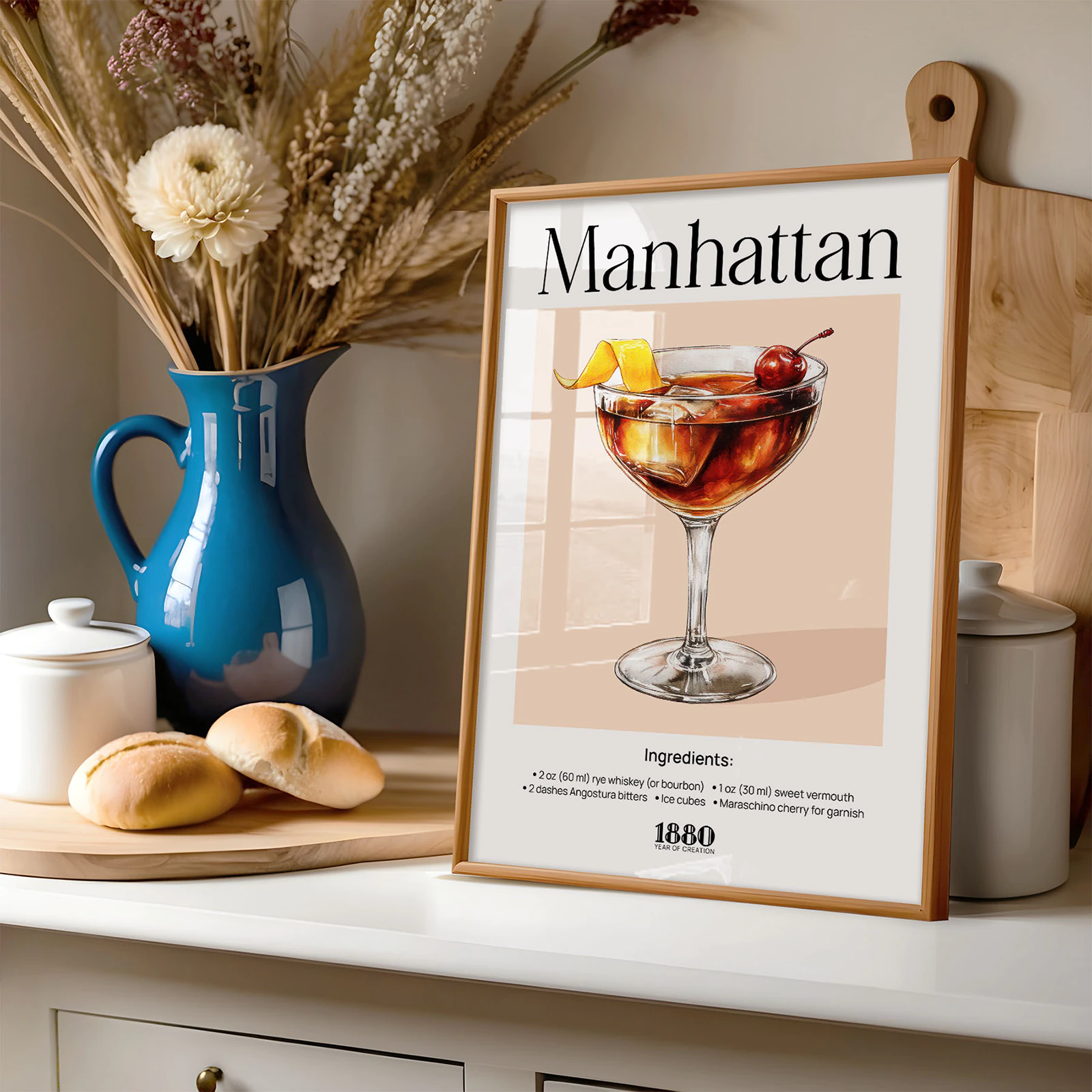 Manhattan Cocktail Poster – Vintage Whiskey Drink Print