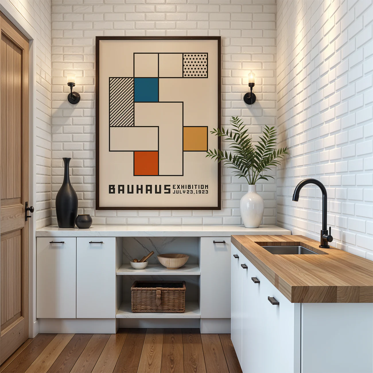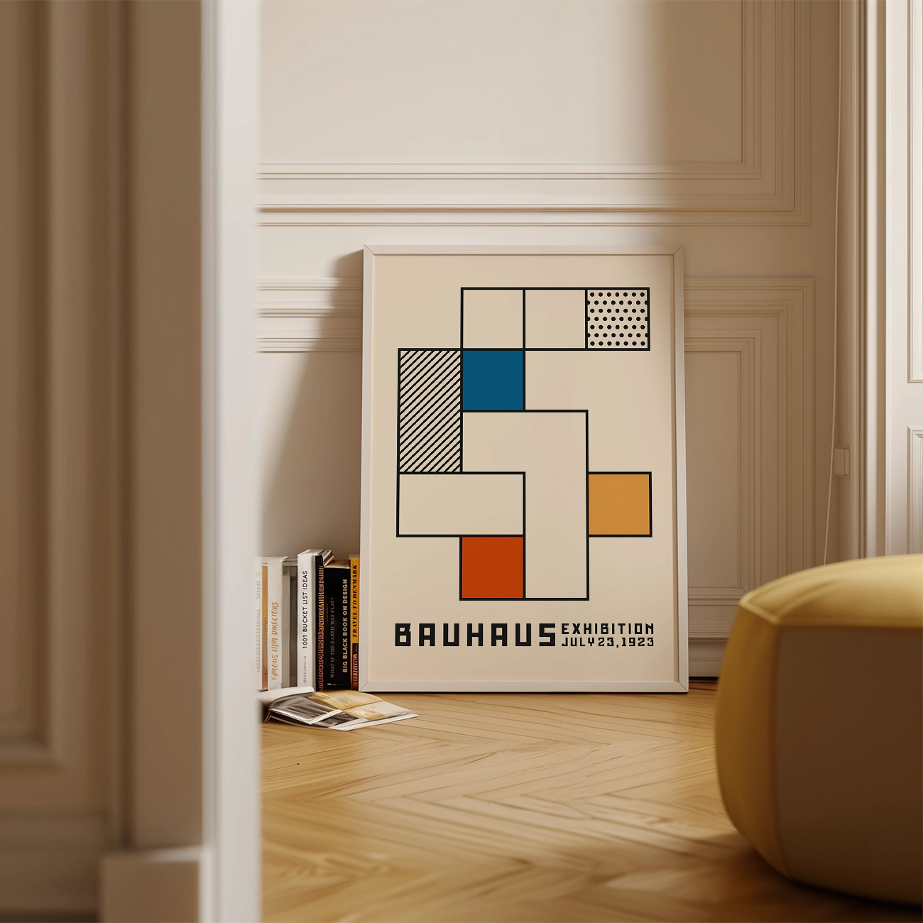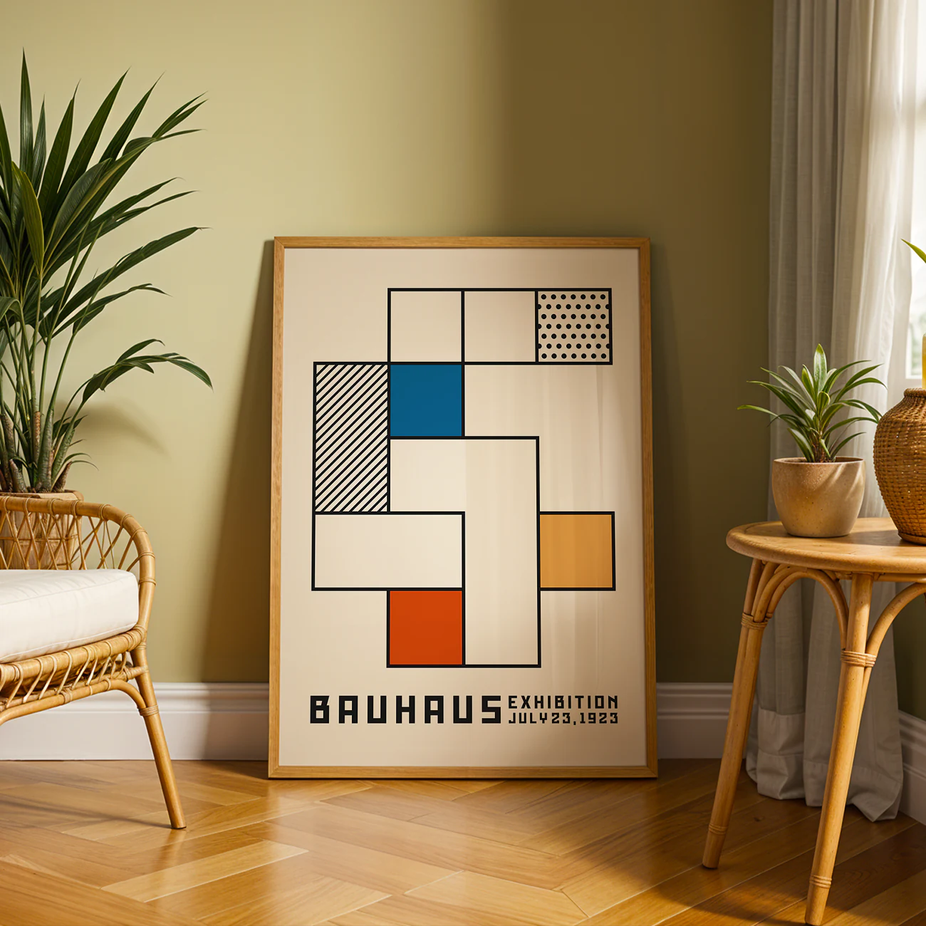 Minimalist wall decor steps into your space with clean lines and playful blocks of blue, red, and yellow dancing on soft cream paper. This Bauhaus poster design feels smart yet friendly, using simple squares and dots that catch the eye without shouting. Printed on sturdy matte paper, it hangs easily and stays bright even in kitchens, bedrooms, or work nooks. You don’t need to be a design pro to love its bold simplicity—just hang it and watch your room come alive. Let these neat shapes bring a spark of joy and style to every corner, finishing off your home with true minimalist wall decor magic.