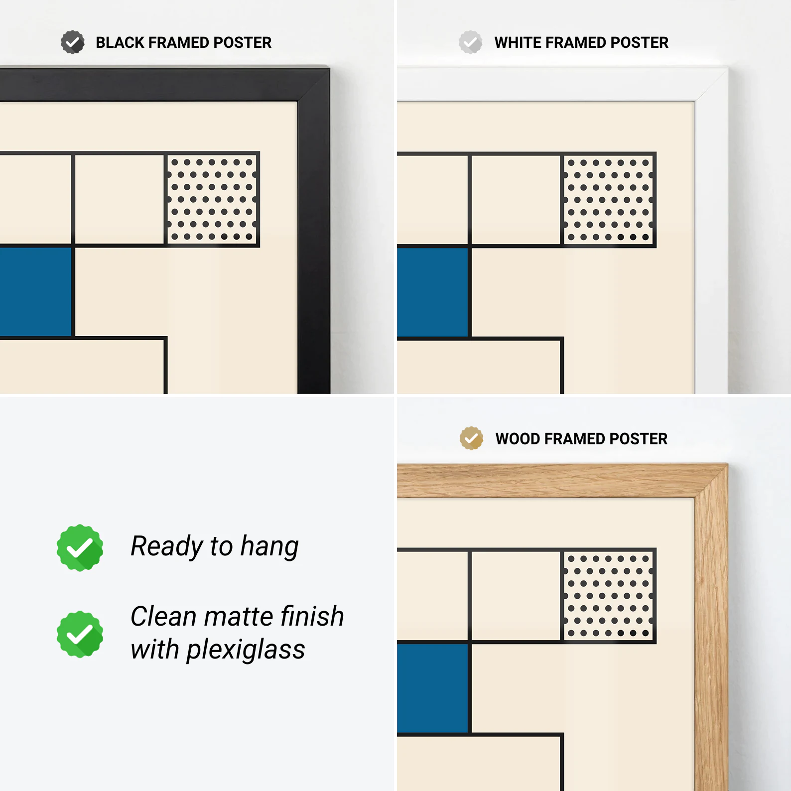 You can order our prints either framed or unframed. Our frames are crafted from lightweight pine wood, measuring 2 cm in width. Each frame includes an acrylic front protector and hanging hardware for easy setup.