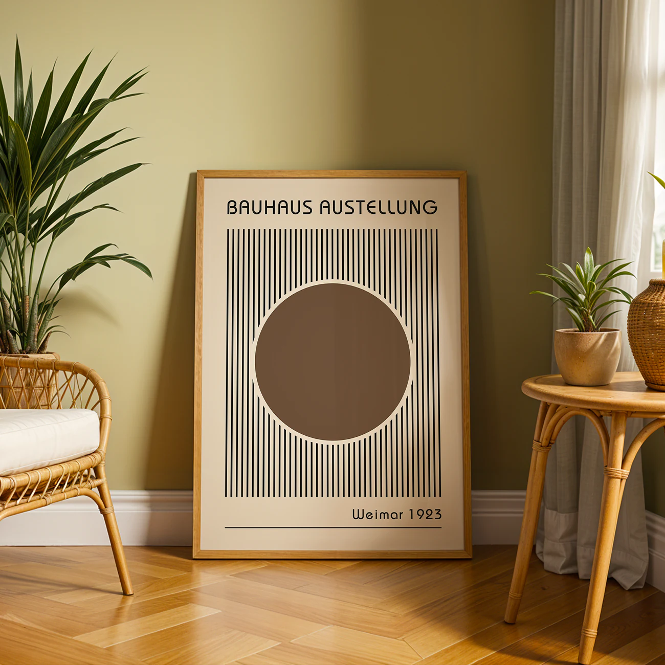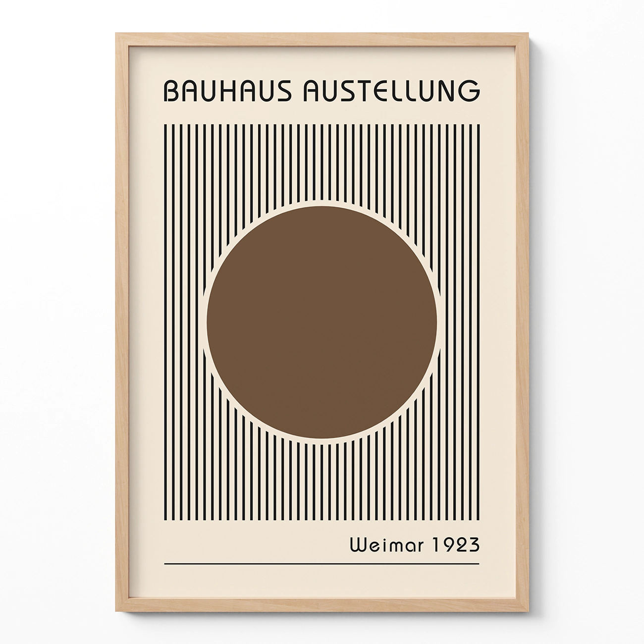 Modern Abstract Wall Art – Bauhaus Print Circle Lines Brown