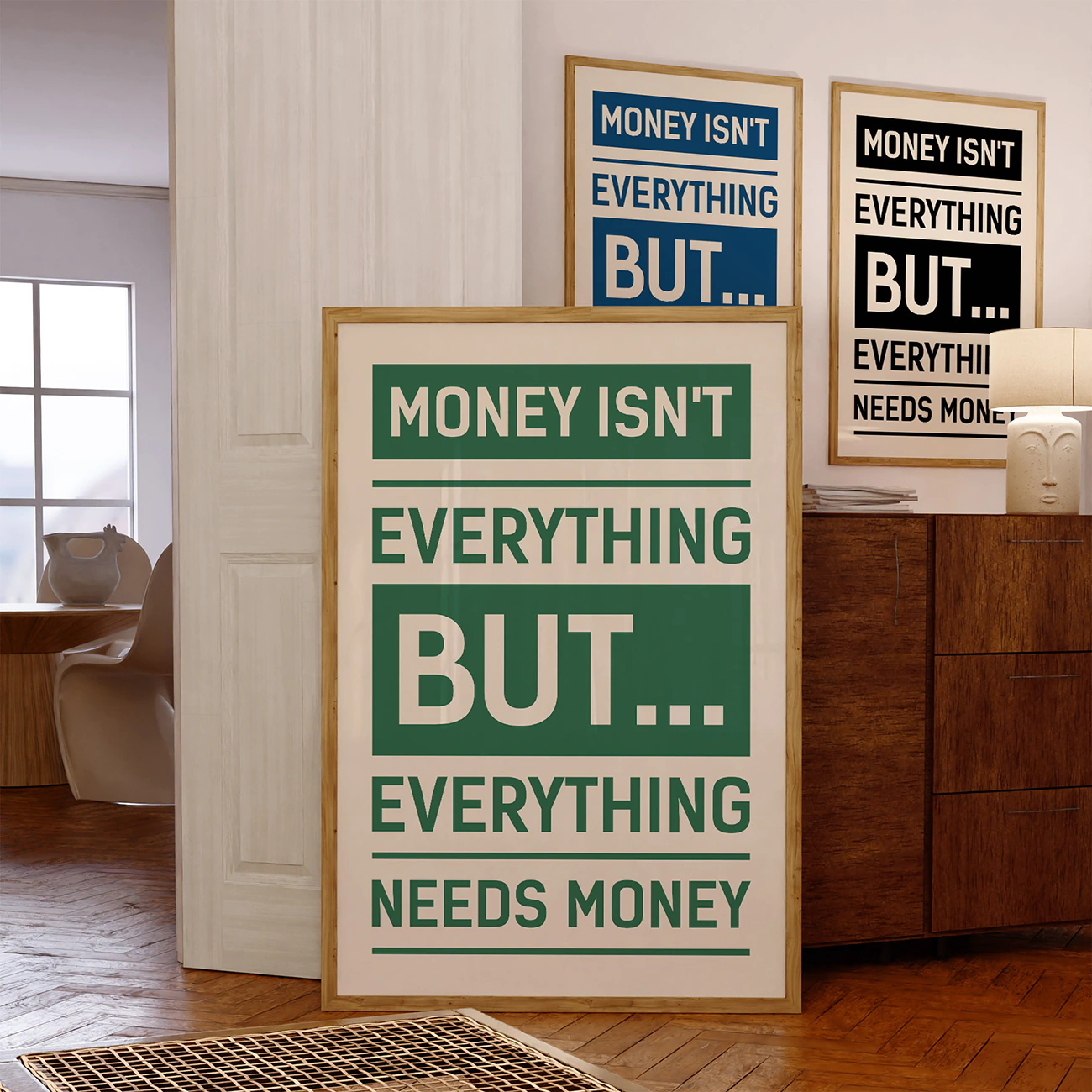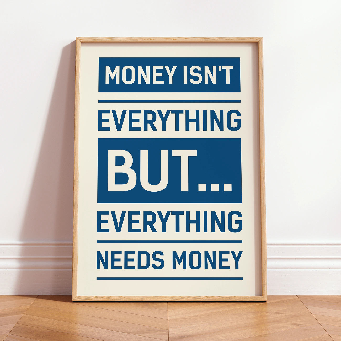 Make a statement with this impactful motivational quote poster featuring the eye-catching phrase: “Money isn’t everything, but everything needs money.” It fits perfectly in home offices, creative studios, and modern interiors. It’s ideal for entrepreneurs, go-getters, and anyone pursuing their goals with a grounded mindset. Printed on high-quality paper, this motivational quote poster adds drive, honesty, and a touch of humor to your everyday space. For more inspiring decor, explore our motivational posters collection.