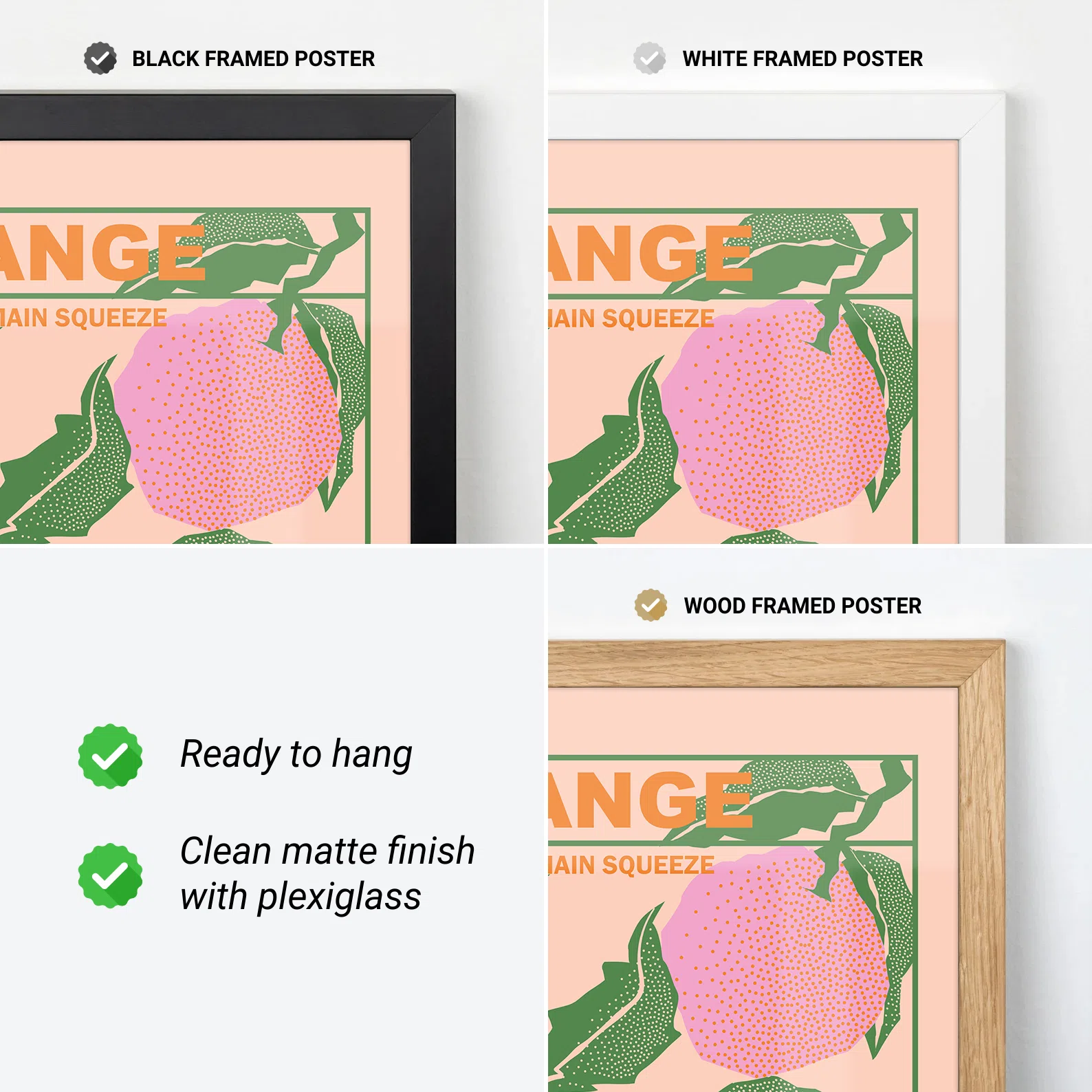 This bright and juicy orange poster brings fun citrus energy into your kitchen or dining area. With bold green leaves, pink and yellow fruits, and a retro juice label design, it feels both playful and stylish. The phrase “You’re My Main Squeeze” adds a sweet and cheeky twist. Whether you love vintage food ads or just want to add color to your space, this artwork is a perfect fit. This vibrant orange poster is printed on thick matte paper, making it long-lasting and great for everyday display.