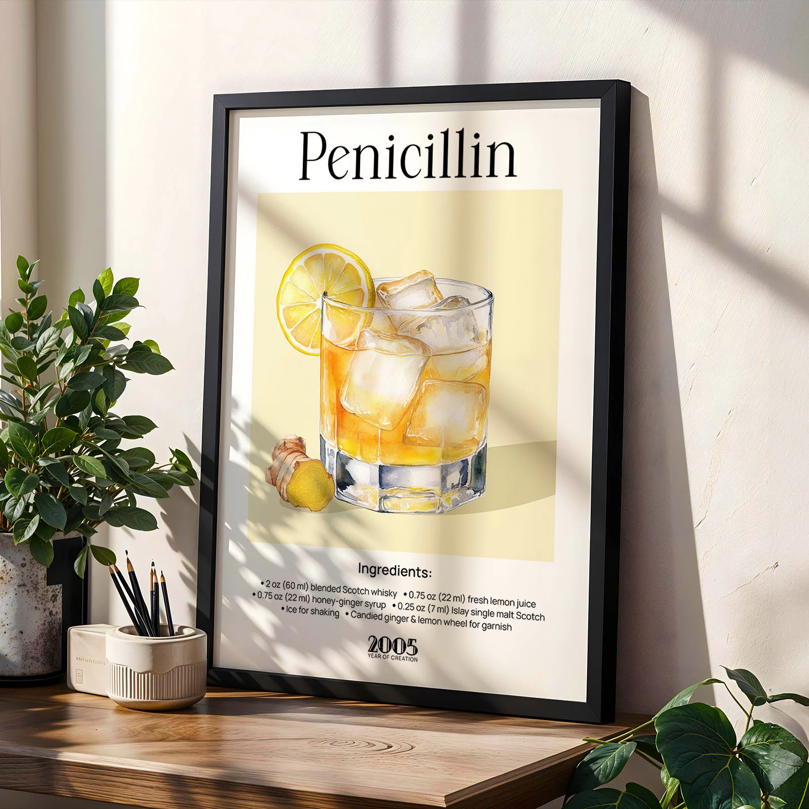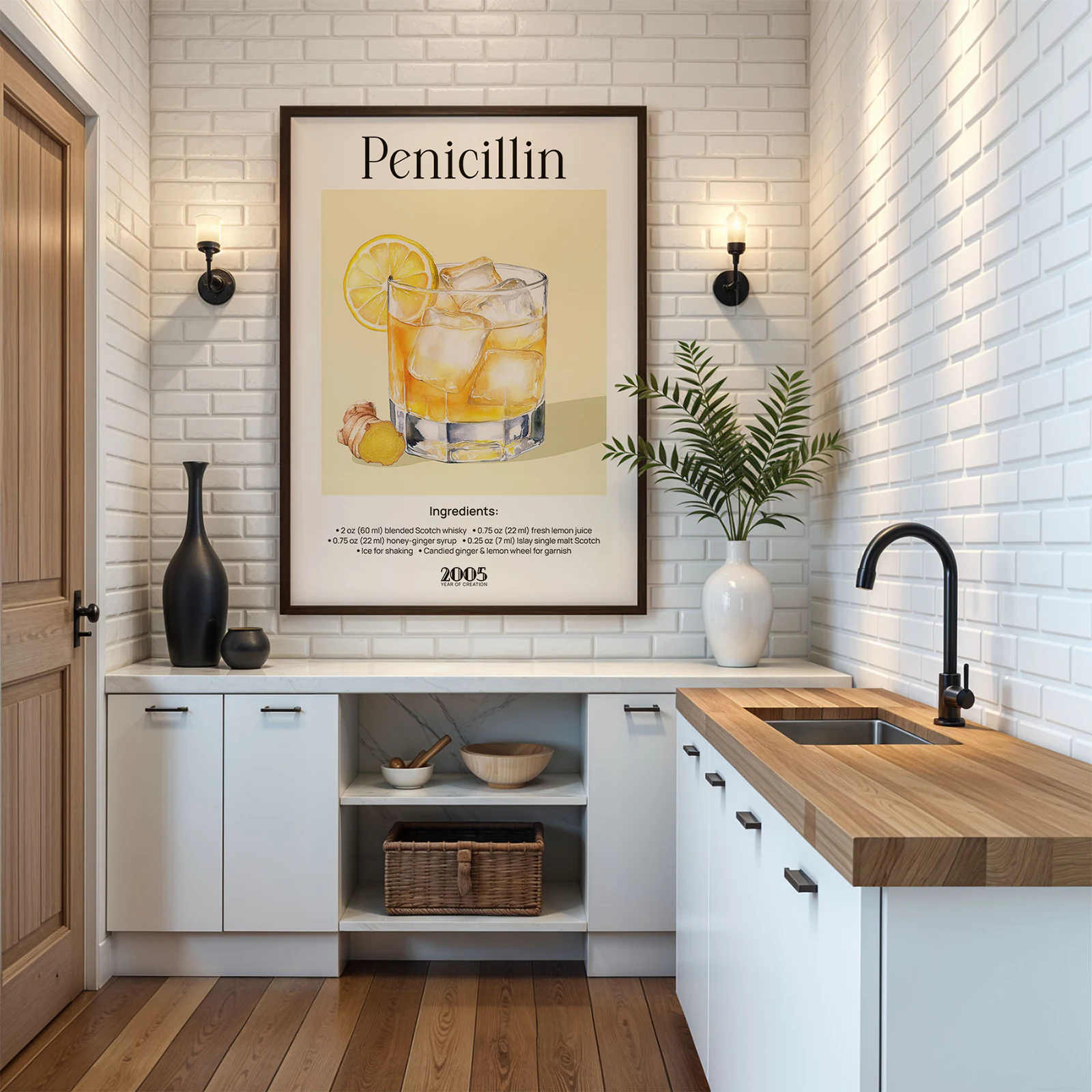 Penicillin Cocktail Poster – Retro Whisky Drink Print