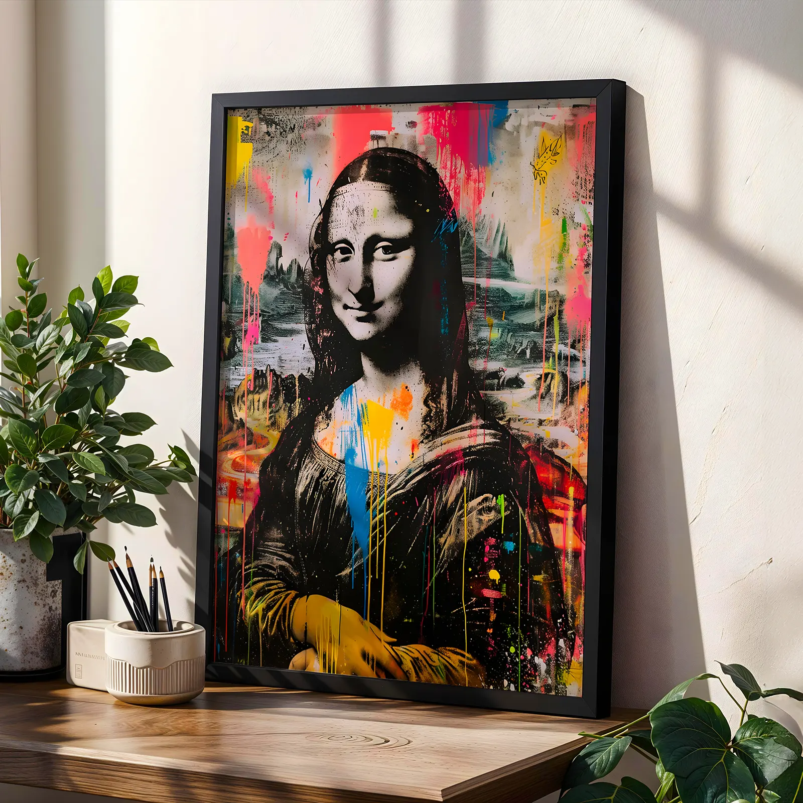 This fun and bold Mona Lisa poster gives a famous painting a modern twist. With bright colors splashed across the artwork, it feels fresh, edgy, and full of energy. It’s perfect for anyone who loves classic art but wants something more exciting on their wall. Whether you hang it in your living room, studio, or office, it’s sure to grab attention and start conversations. Printed on high-quality matte paper, it looks sharp and lasts long. Add color and personality to your space with this creative Mona Lisa poster full of attitude.