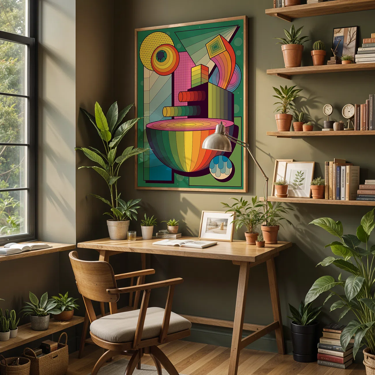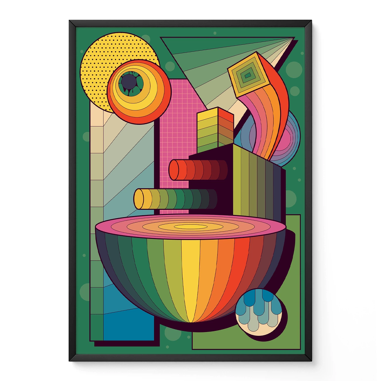 This psychedelic print bursts with color and abstract energy. Featuring surreal geometric shapes, bold gradients, and a retro-futuristic layout, it’s the perfect wall art for those who love something different. Its layered composition invites curiosity and adds a fun, modern twist to any space—whether it’s a studio, living room, or hallway. Printed on durable 230gsm matte paper, this psychedelic print is vibrant, high quality, and made to impress.