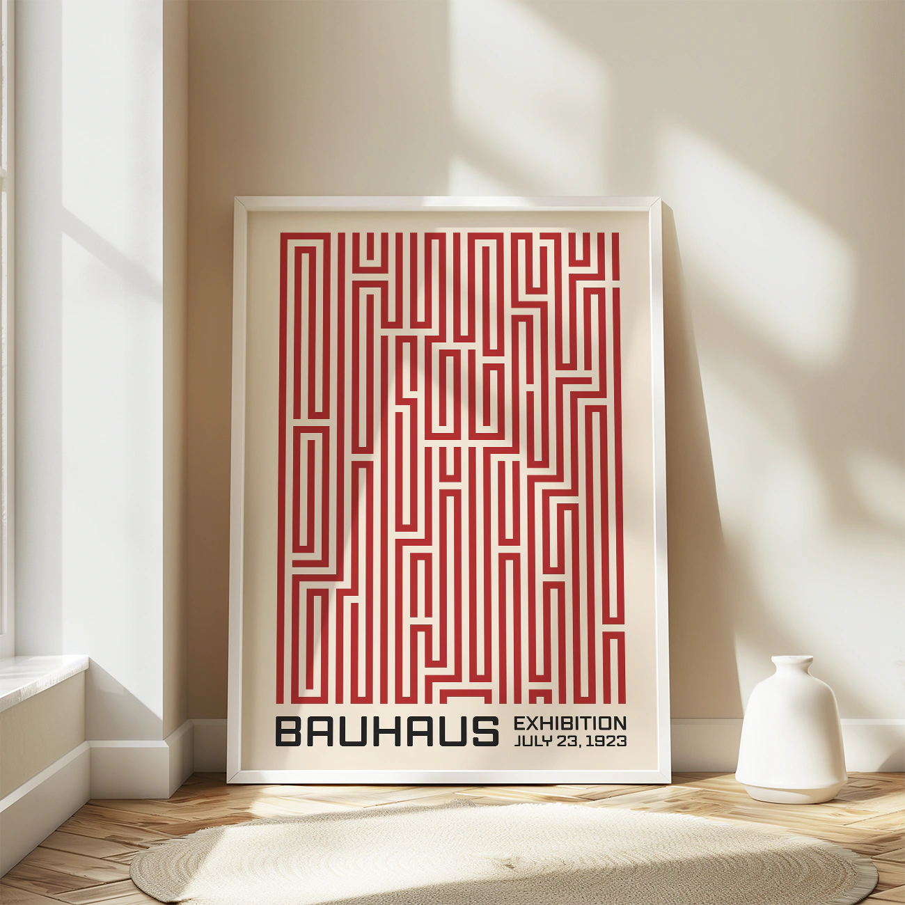 Red Bauhaus Vintage Mid Century Modern Art Print