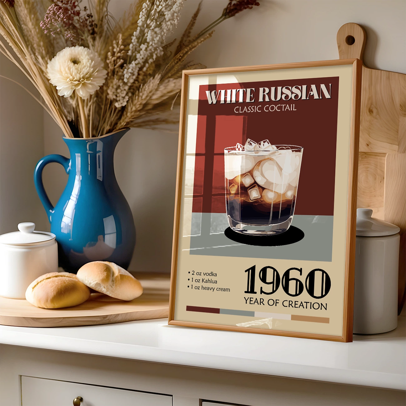 Retro Cocktail Poster – White Russian Cocktail Art Print