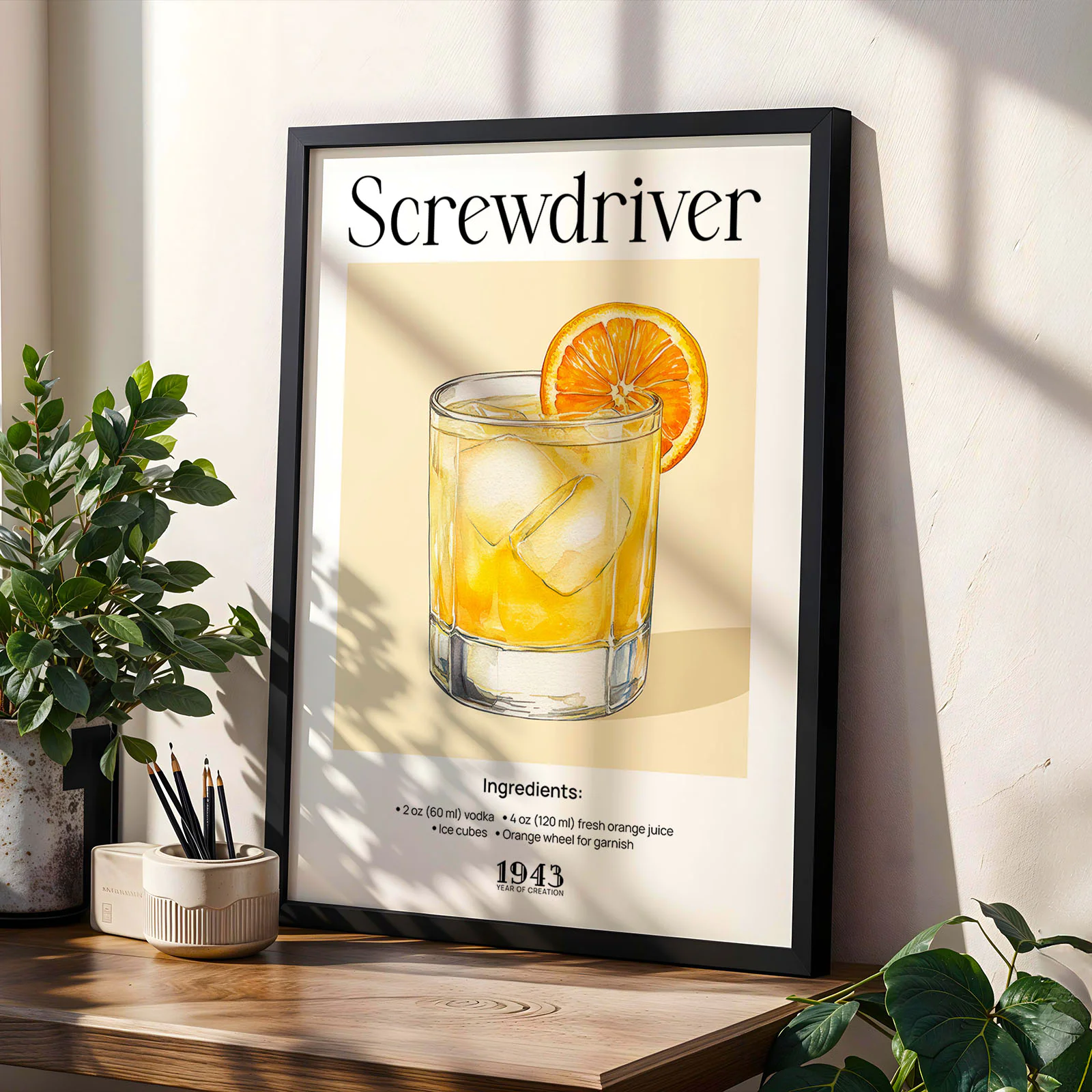 Retro Screwdriver Drink Poster – Vintage Cocktail Wall Art
