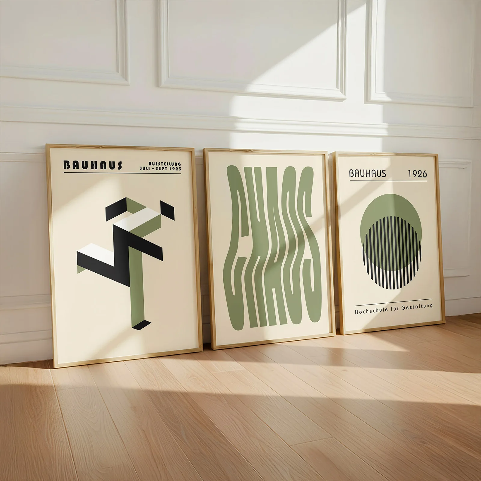 This modern set of 3 art prints features bold geometric forms and a distinct Bauhaus influence, making it ideal for lovers of clean, abstract design. With earthy green tones and striking shapes, the posters work beautifully in minimalist interiors, home offices, or creative spaces. Printed on premium-quality paper, they offer excellent detail and color depth. Whether you’re refreshing a wall or building a gallery, this set of 3 art prints brings sophistication and structure to your décor with timeless appeal.