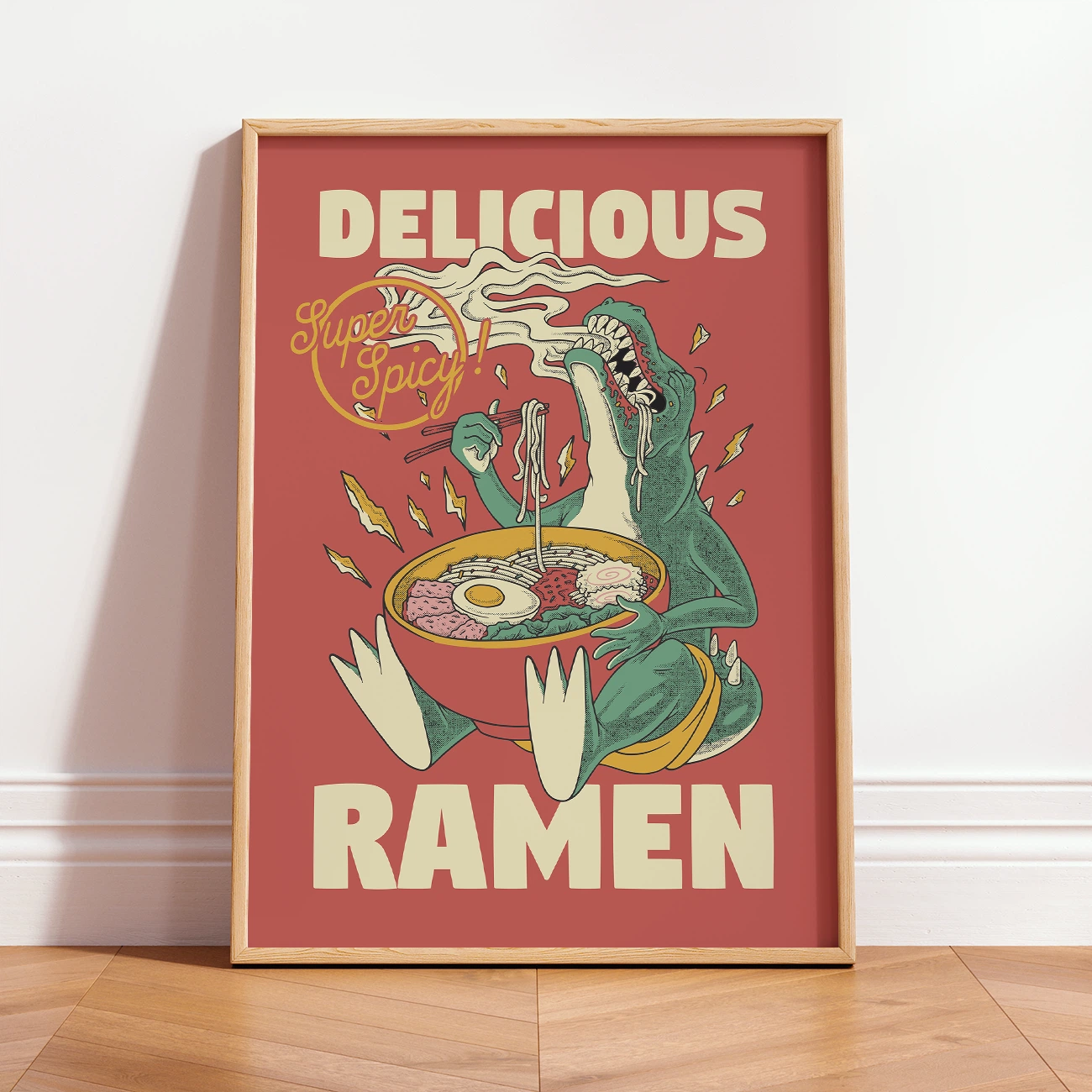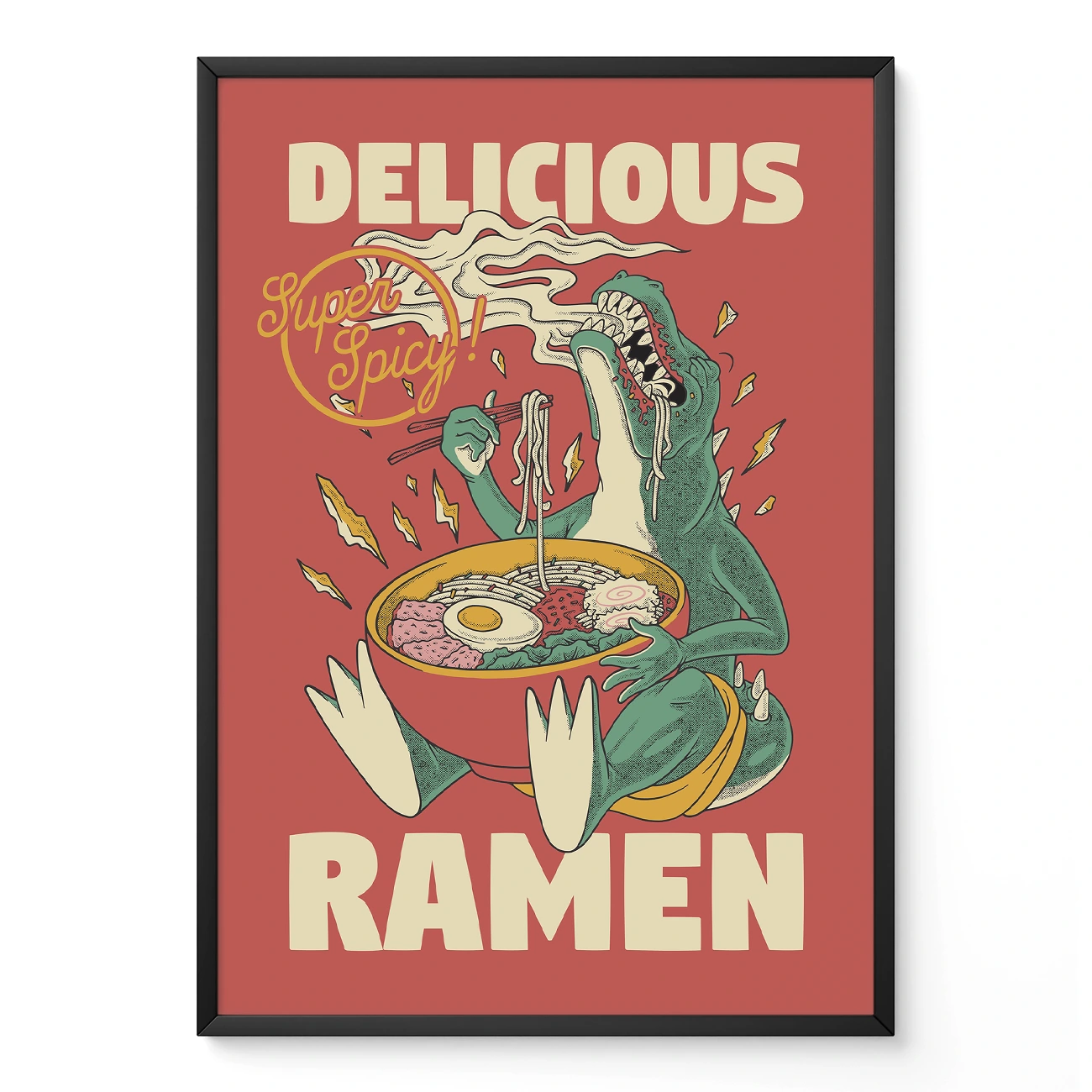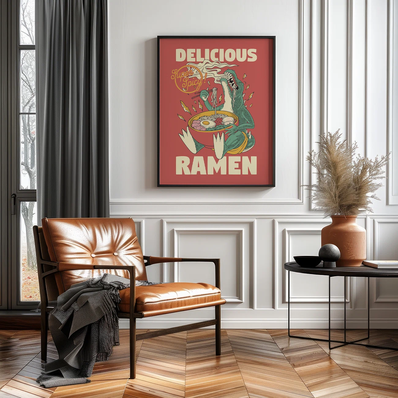 Super Spicy Ramen Print – Retro Dinosaur Poster