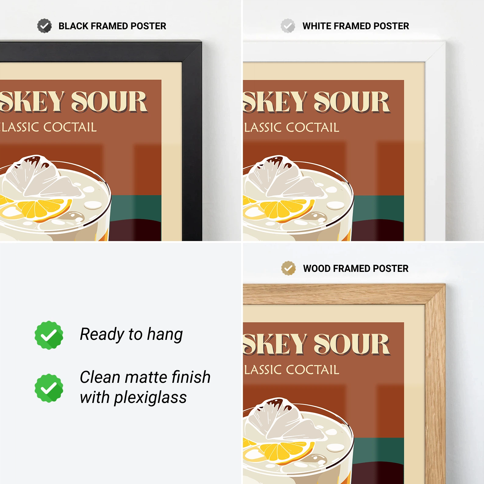 This vintage cocktail art piece showcases the legendary Whiskey Sour, a drink that’s been refreshing cocktail lovers since 1862. The warm, retro-inspired colors highlight a detailed rocks glass filled with bourbon, lemon juice, and a foamy egg white top. The included recipe makes it both stylish and functional—ideal for kitchen walls, home bars, or whiskey-themed spaces. Printed on matte paper, it combines durability with a smooth finish. Elevate your décor with classic charm and mixology history through this timeless vintage cocktail art print.