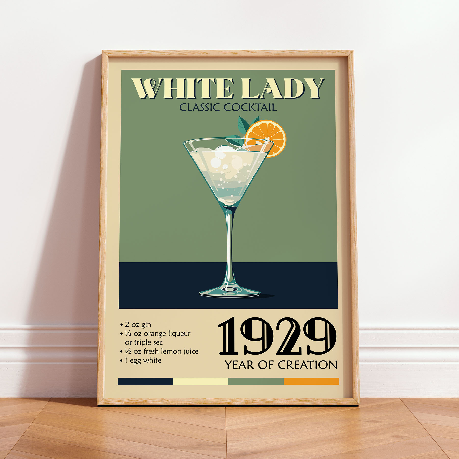 Vintage Cocktail Poster – White Lady Recipe Print
