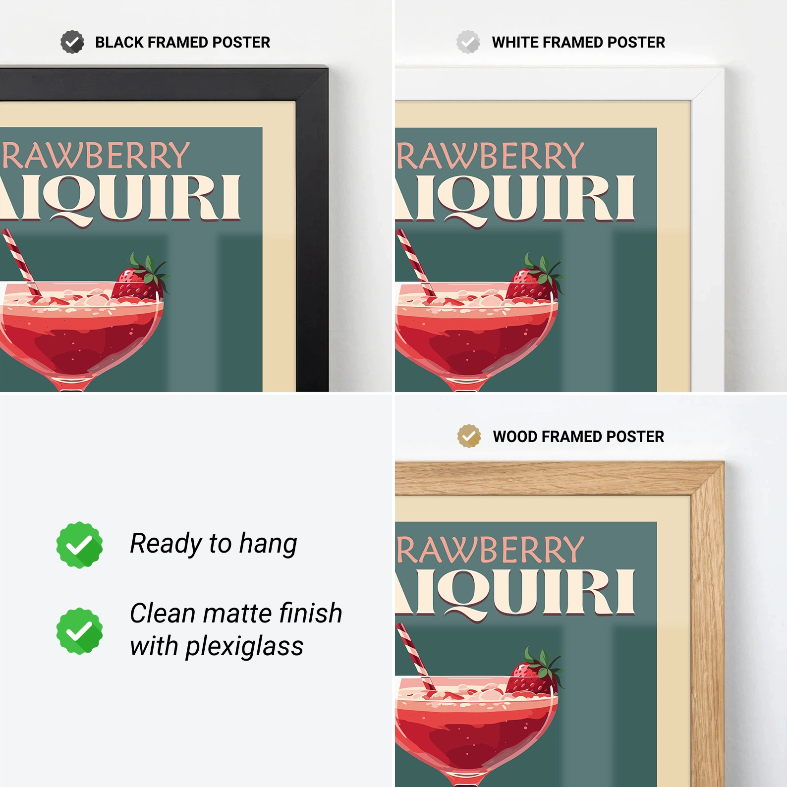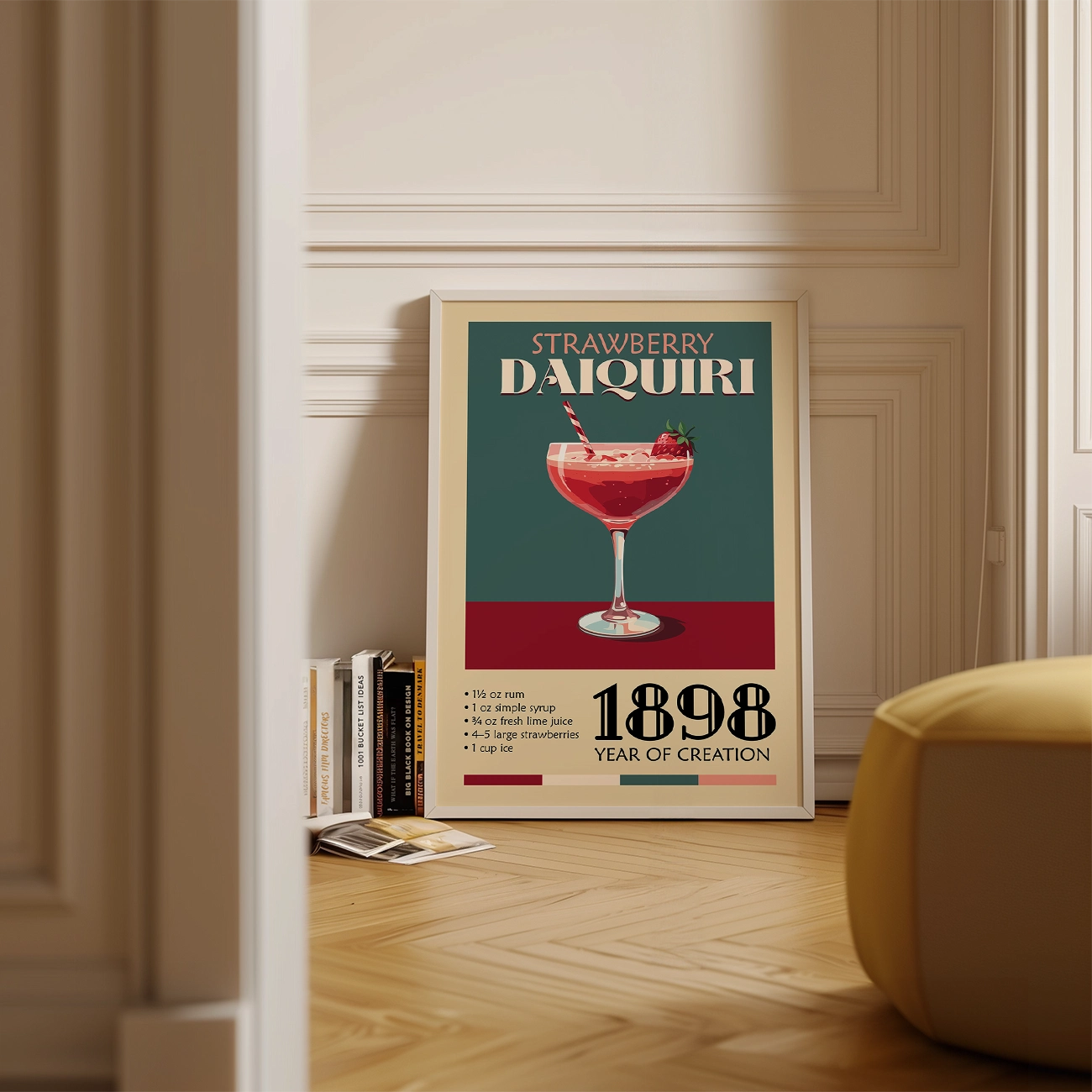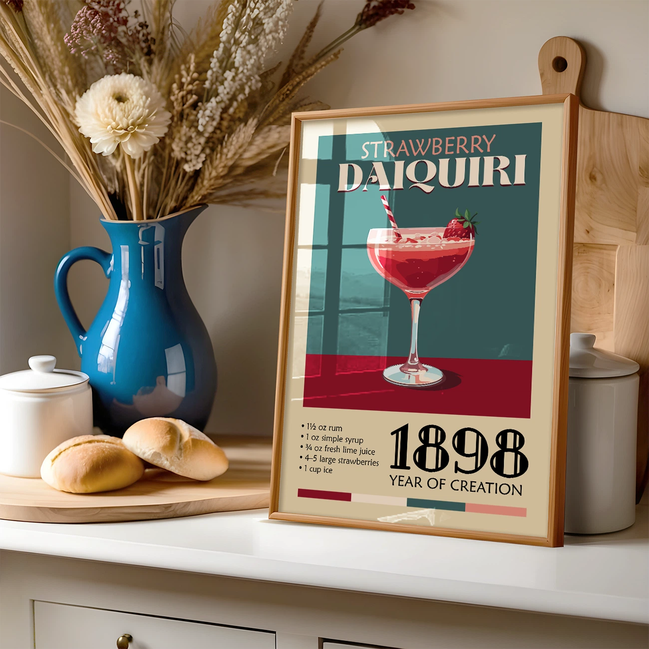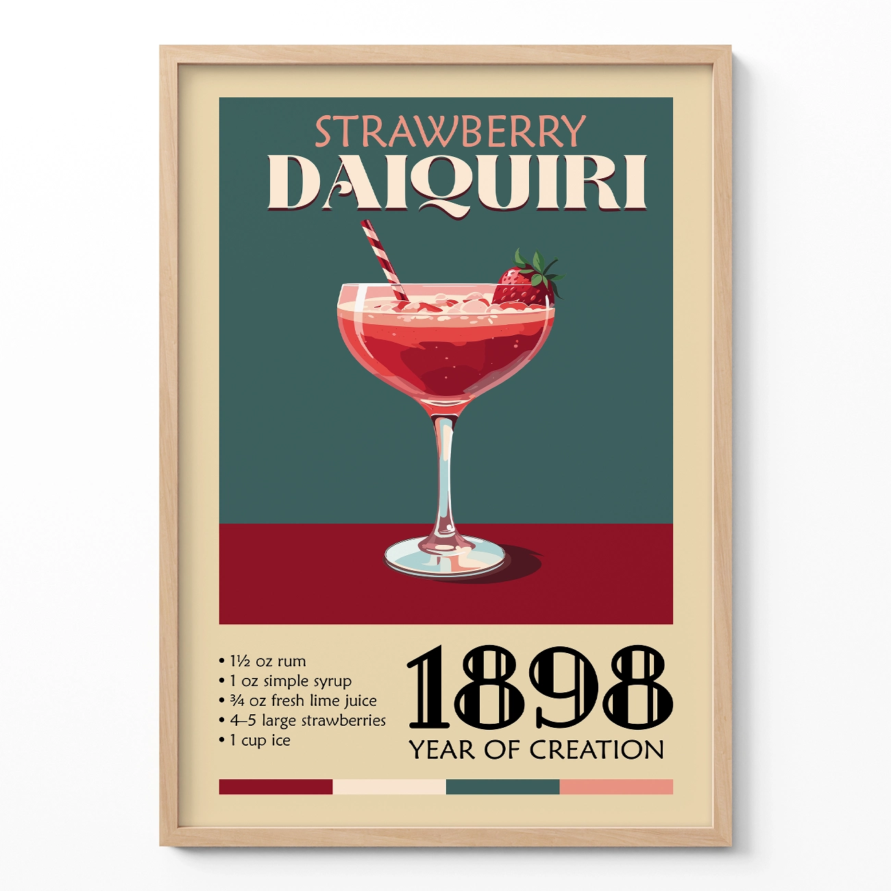 Vintage Cocktail Print – Strawberry Daiquiri Recipe Poster