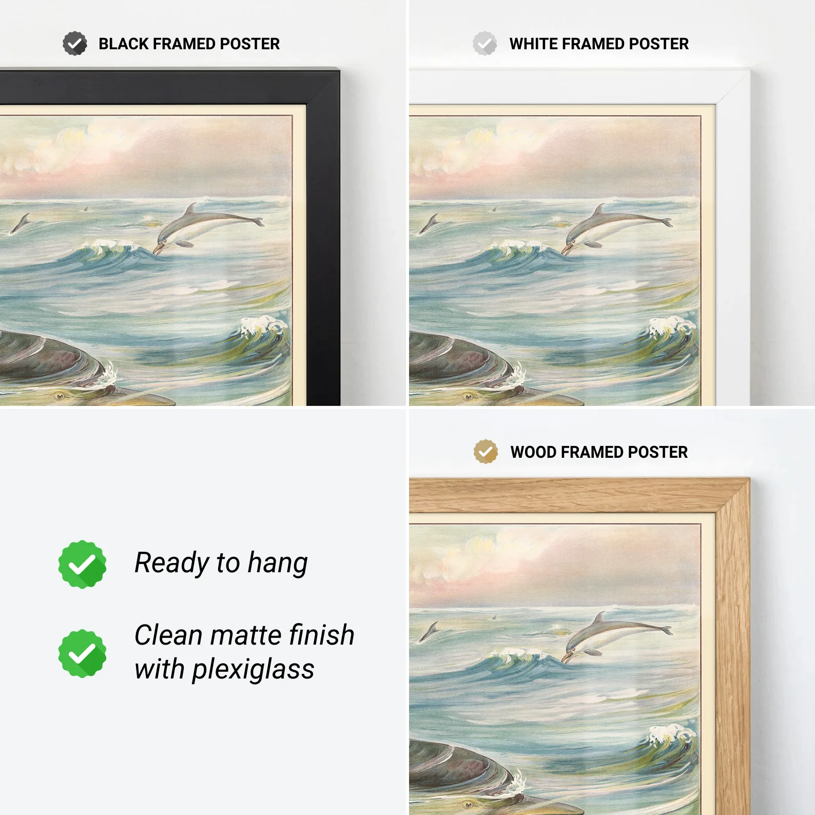 You can order our prints either framed or unframed. Our frames are crafted from lightweight pine wood, measuring 2 cm in width. Each frame includes an acrylic front protector and hanging hardware for easy setup.