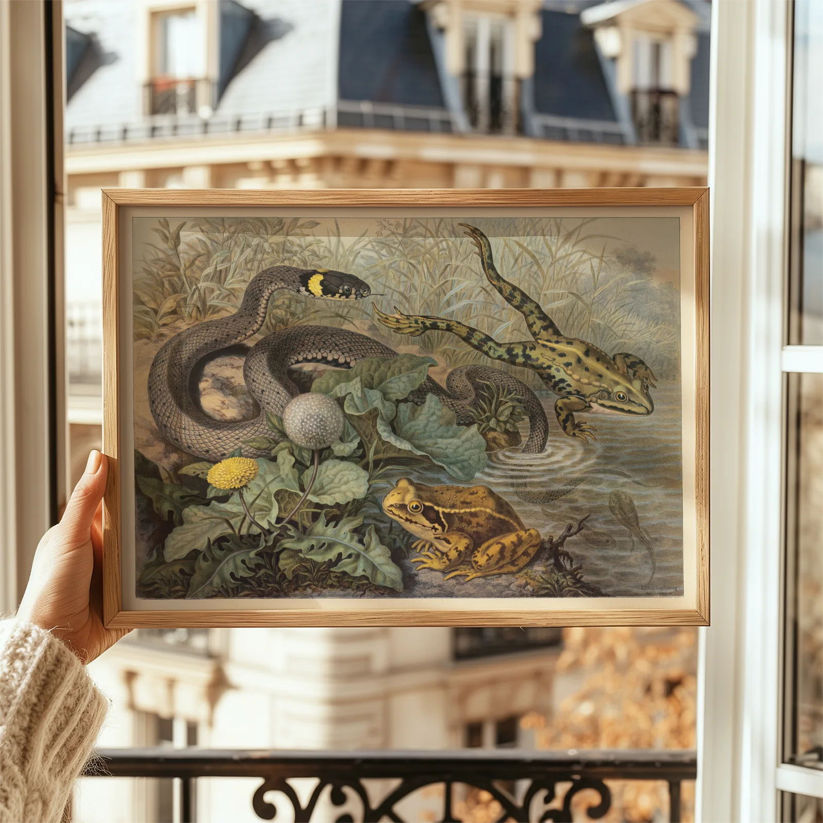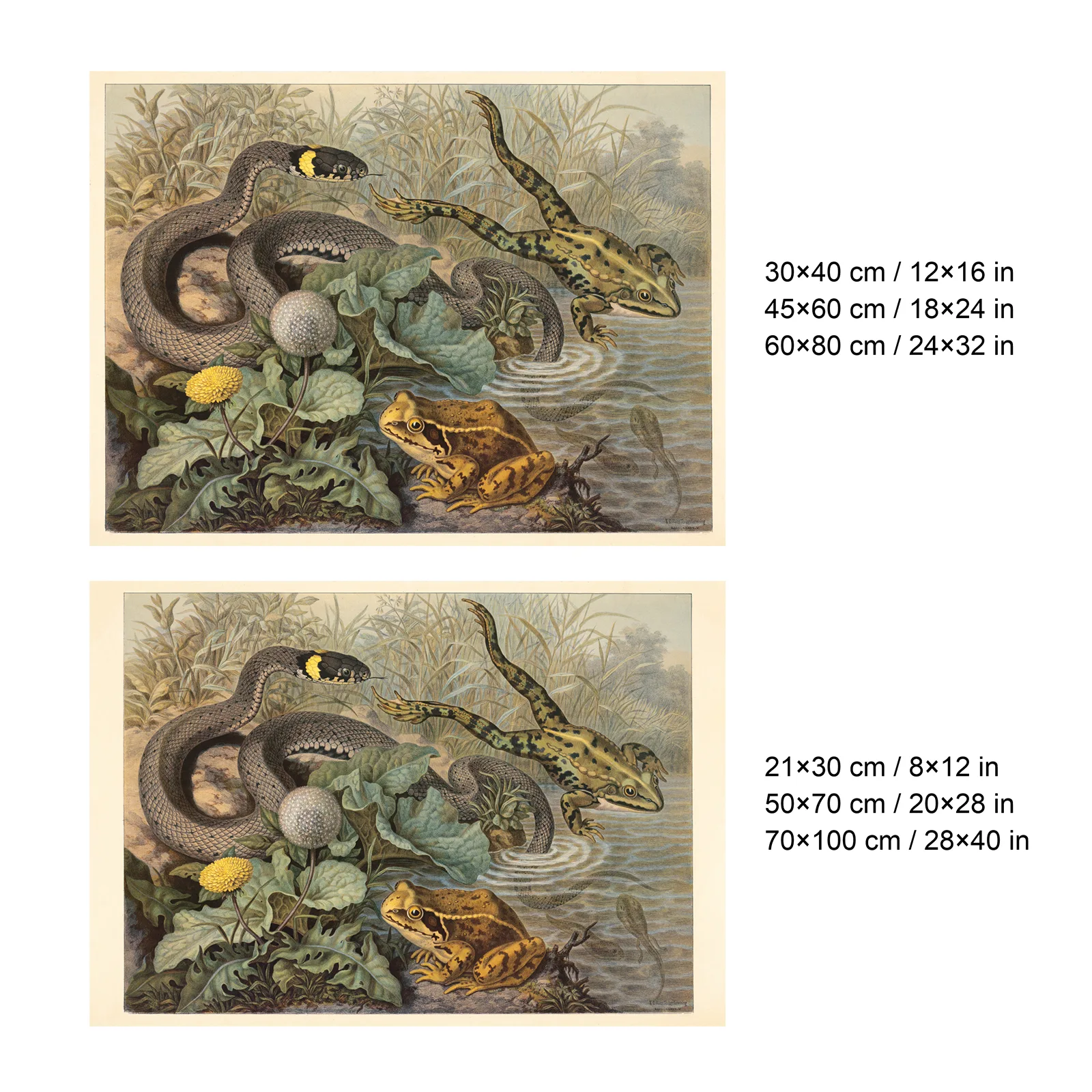Vintage Frog and Grass Snake Poster – Antique Reptile Print