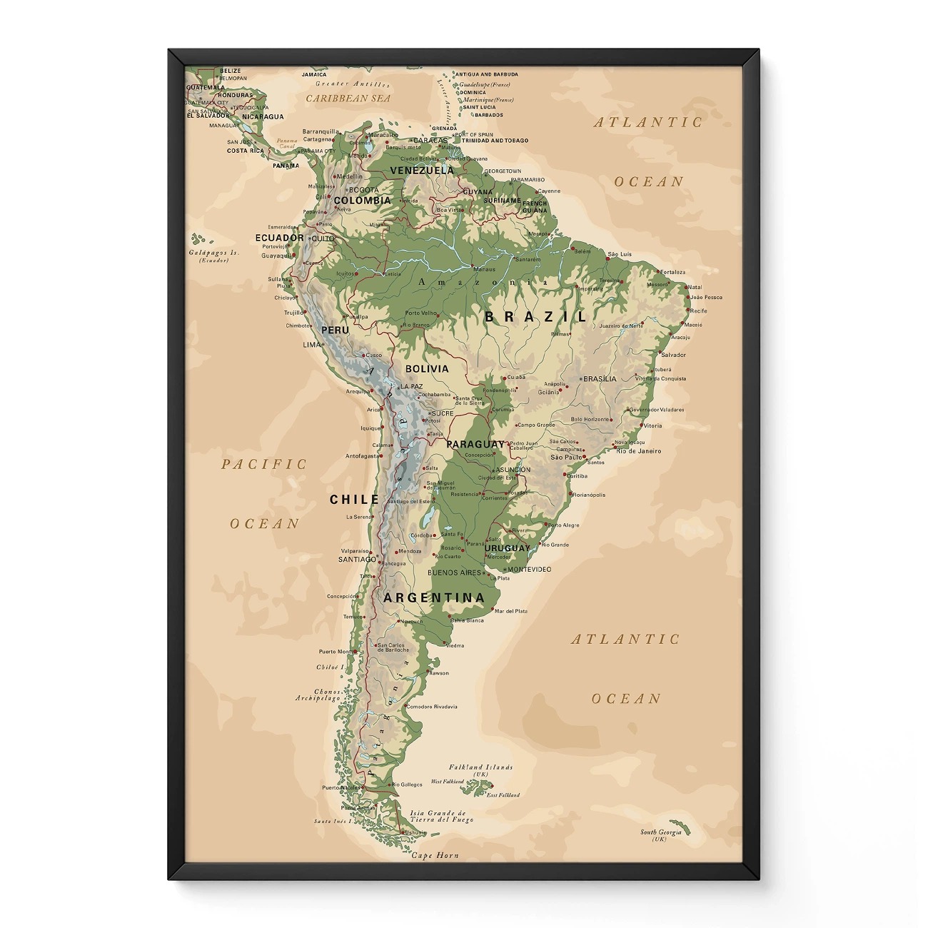 This vintage South America map shows the continent’s countries, cities, rivers, and natural landmarks in a beautiful retro color style. It’s perfect for anyone who loves travel, geography, or historical-inspired decor. The map looks vintage but includes updated geographic details, so it’s both decorative and informative. Printed on thick matte paper, it adds a classy touch to any room – from study walls to living rooms or creative studios. Whether you’re decorating your home or gifting a traveler, this artwork fits in perfectly. Bring the charm of old-world maps into your space with this vintage South America map.