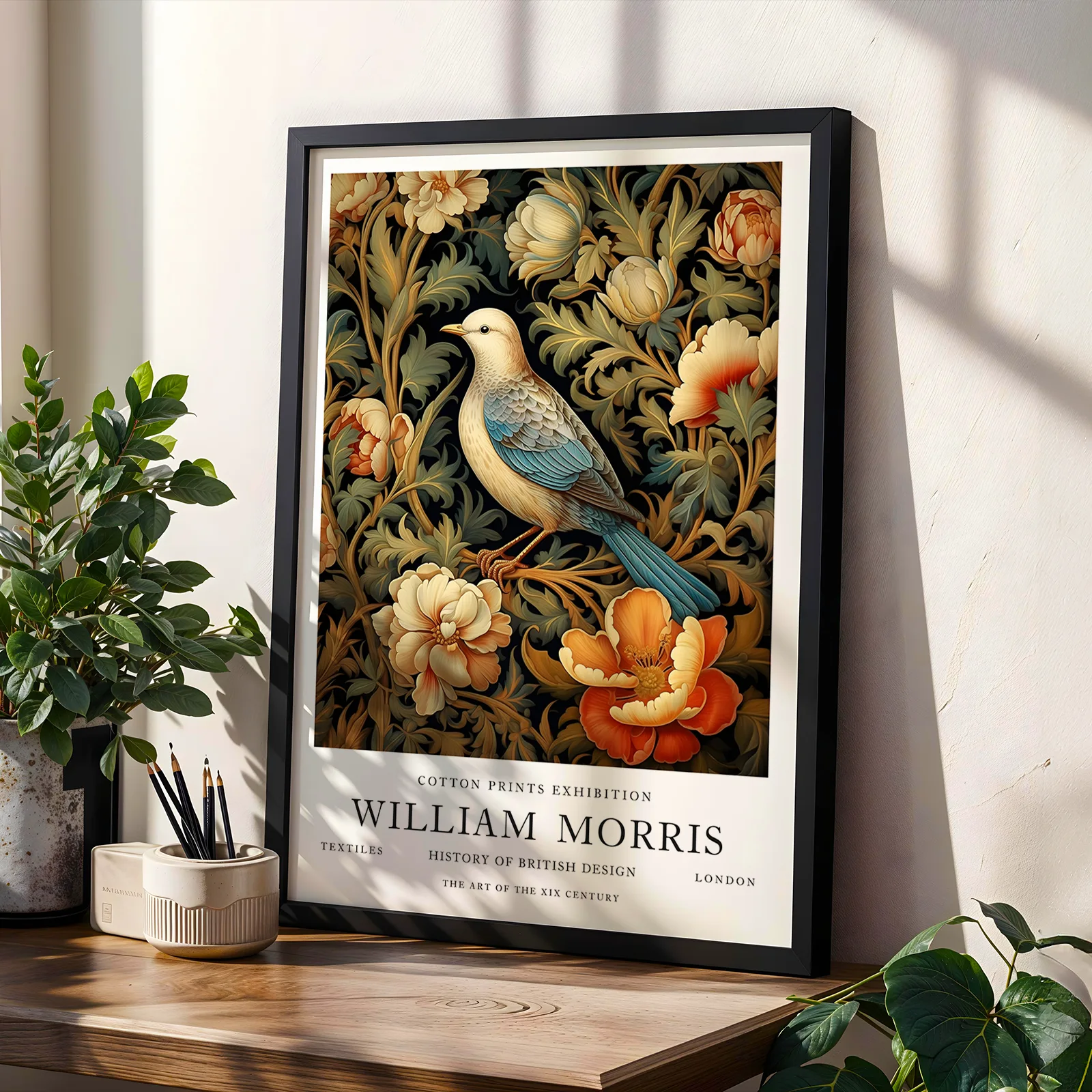 Rich floral details and a graceful bird stand out in this William Morris poster, inspired by the nature based patterns created by the designer himself. The deep tones and flowing leaves bring warmth and character to a living room, bedroom, or even a cozy reading space. The design feels classic but easy to match with modern interiors. Printed on high quality paper, every detail looks clear and smooth. Bring timeless nature style into your home with this William Morris poster on your wall.